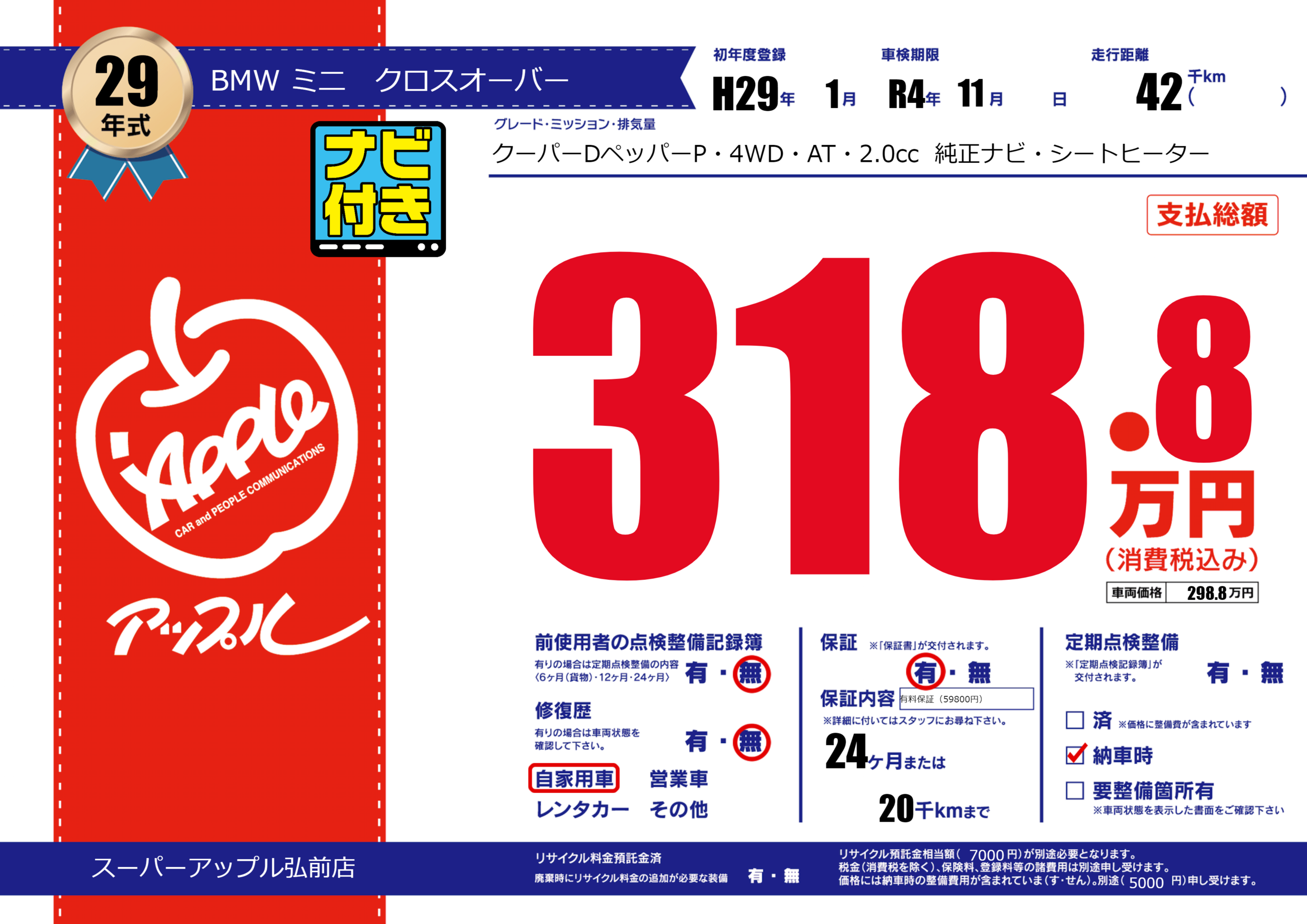 | 車名 | BMW ミニ クロスオーバー | グレード ミッション 排気量 |