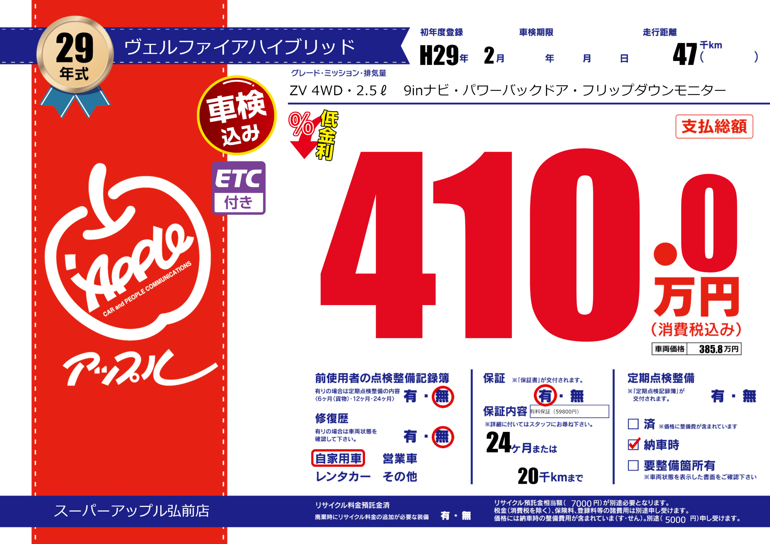 | 走行キロ | 4.7万km | 初年度登録 | H29年2月 |