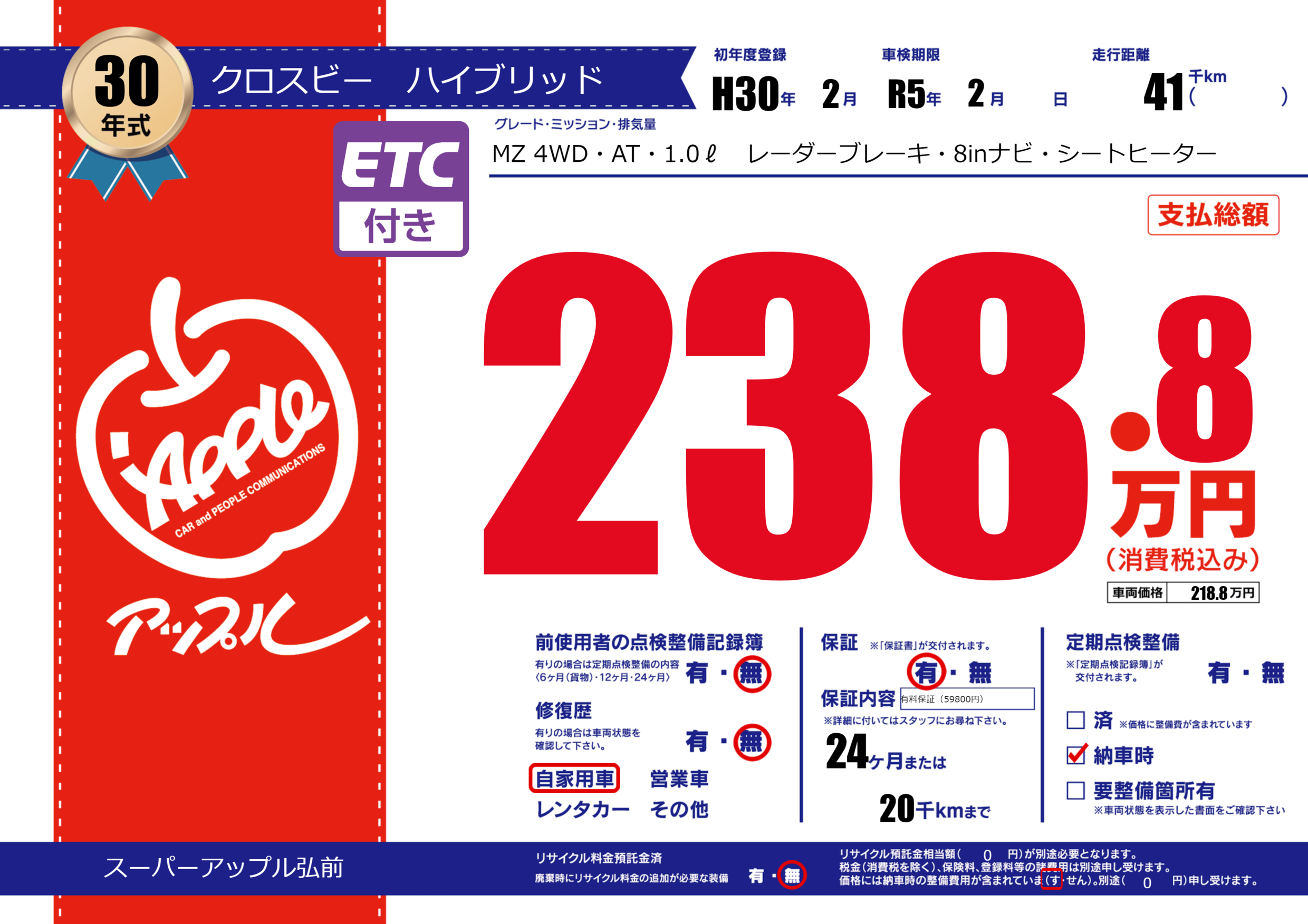 | 走行キロ | 4.1万km | 初年度登録 | H30年2月 |