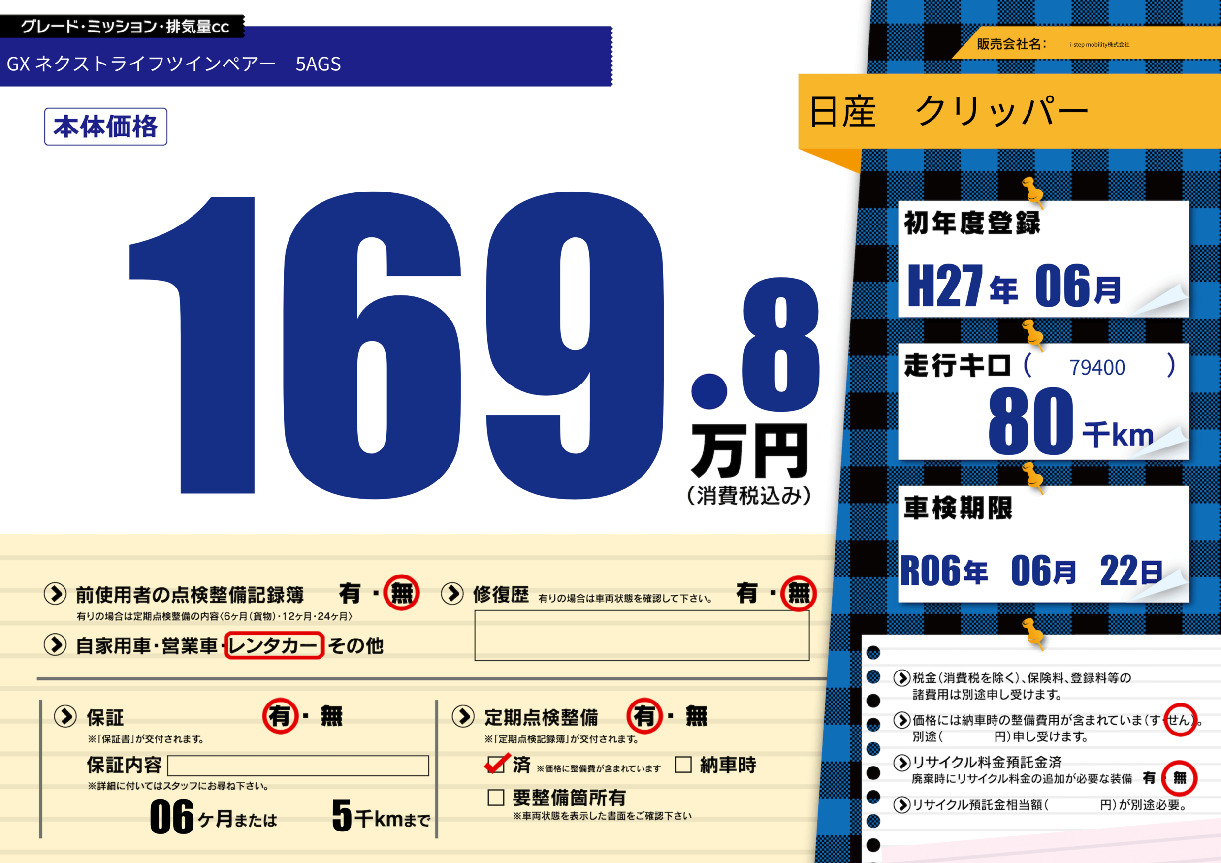 | 定期点検整備 | 定期点検整備あり 定期点検整備済み | ||