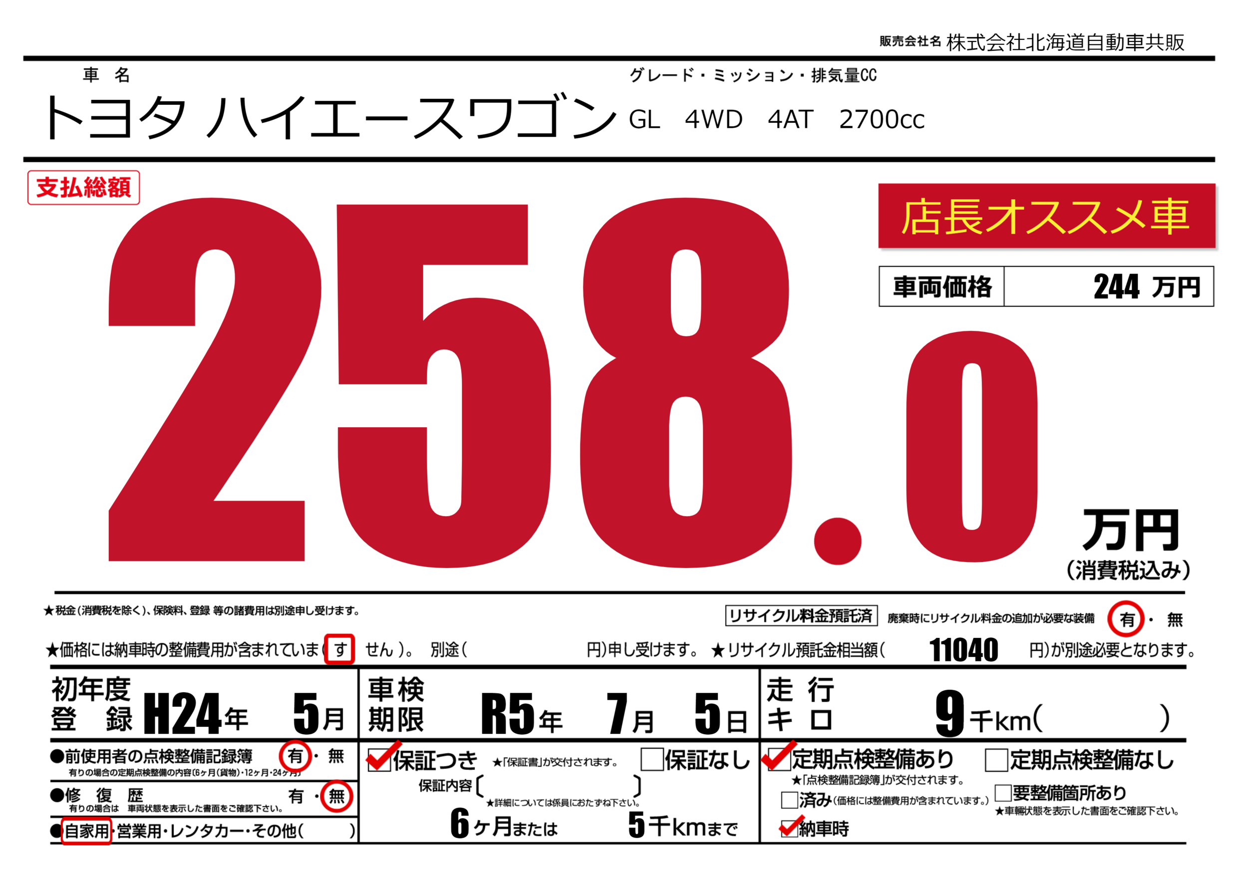 保証付き 保証内容(---) 6ヶ月または(5)千kmまで |