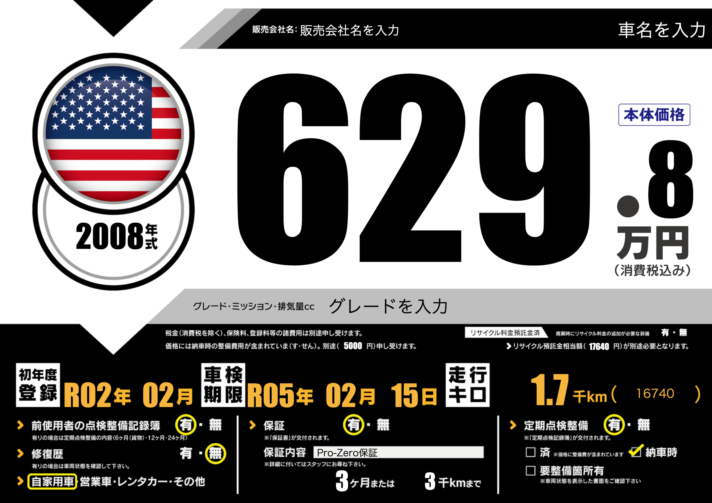 保証付き 保証内容(Pro-Zero保証) 3ヶ月または3千km |