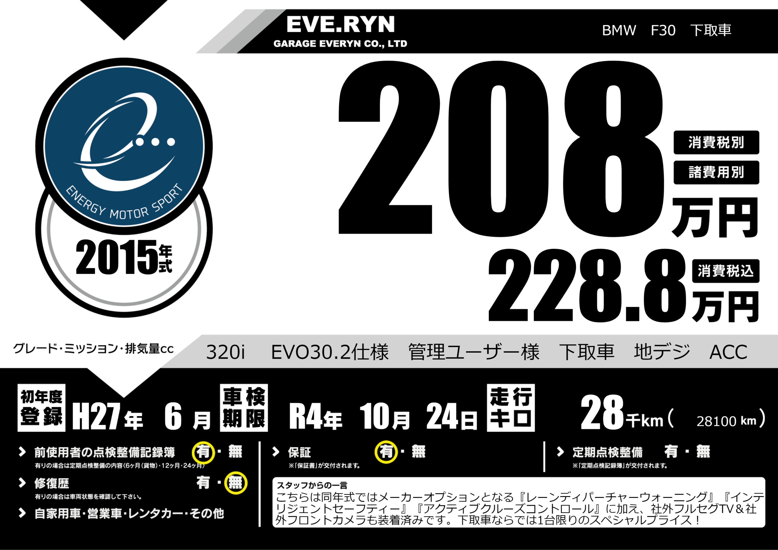 320i EVO30.2仕様 管理ユーザー様 下取車 地デジ ACC |