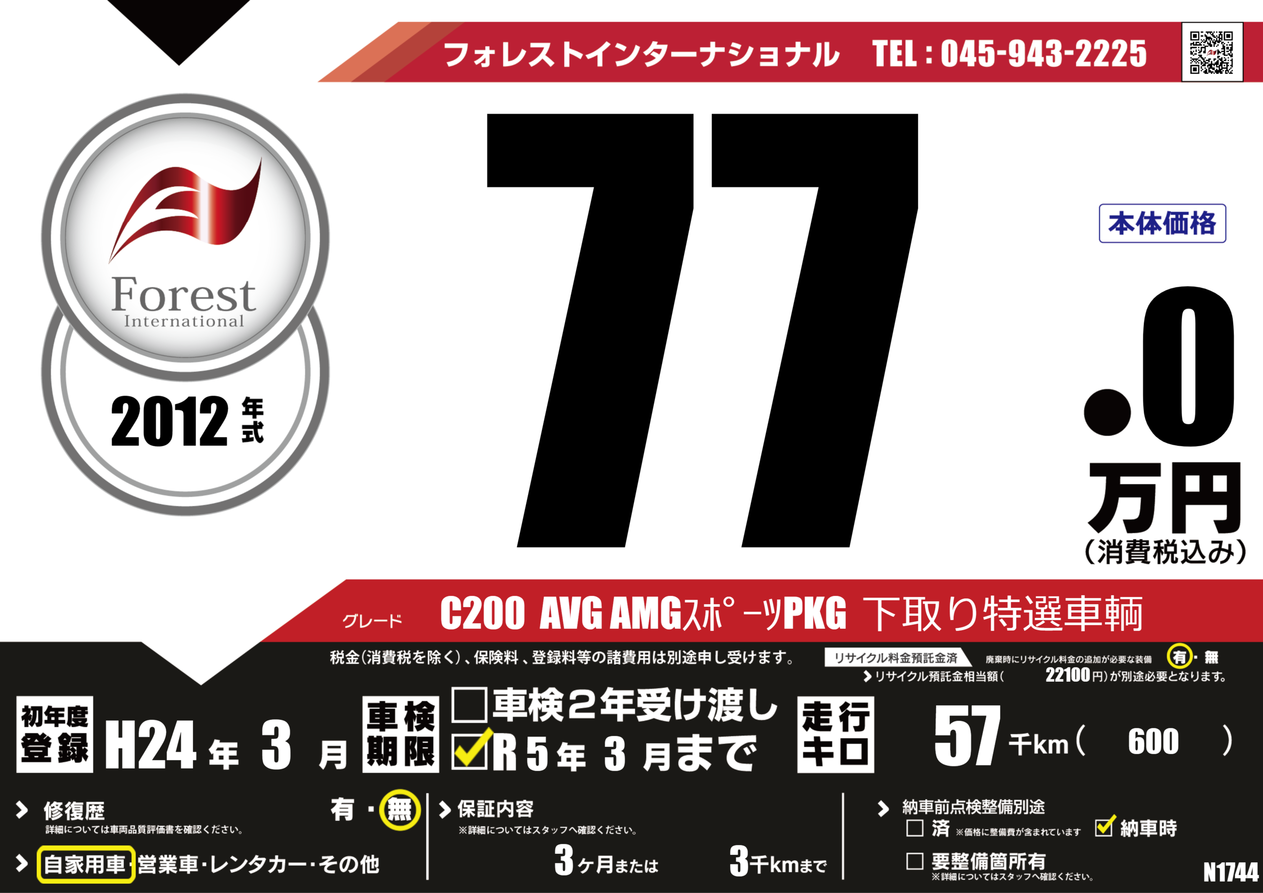 C200 AVG AMGスポーツPKG 下取り特選車輌 |