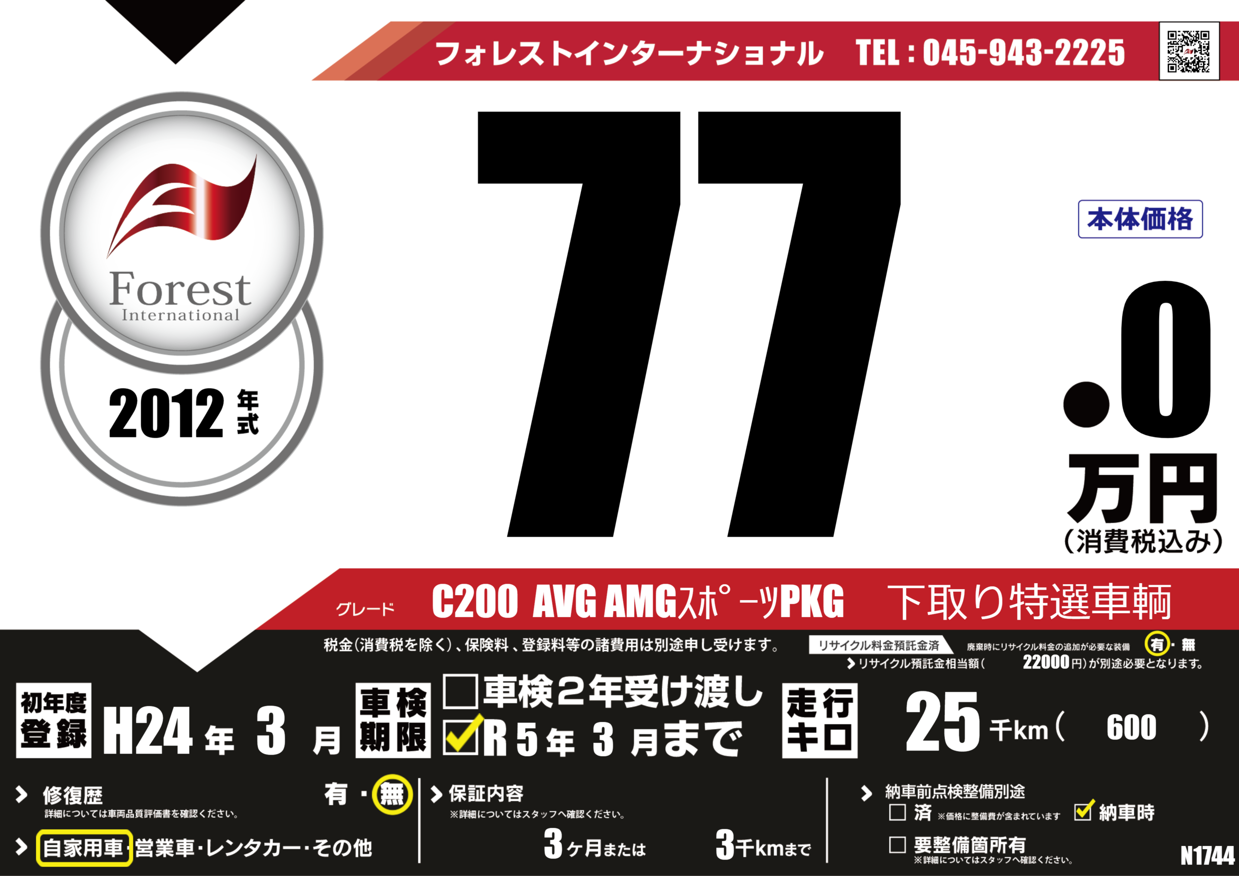C200 AVG AMGスポーツPKG 下取り特選車輌 |
