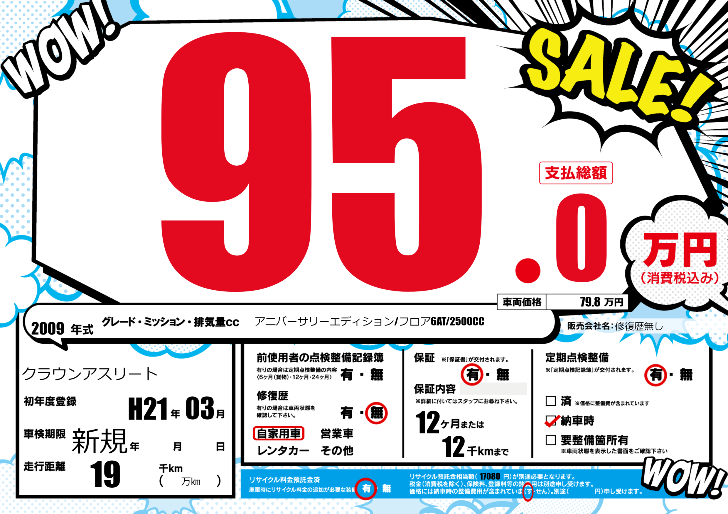 保証付き 保証内容(---) 12ヶ月または(12)千kmまで |