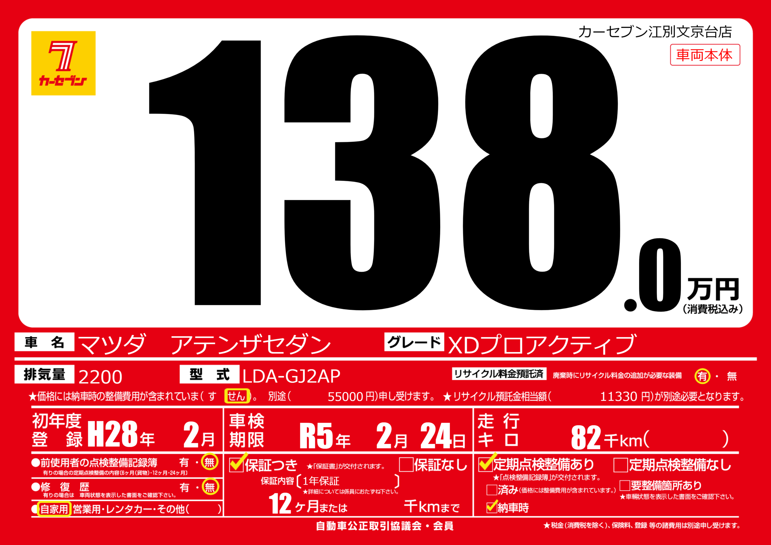 | 走行キロ | 8.2万km | ||