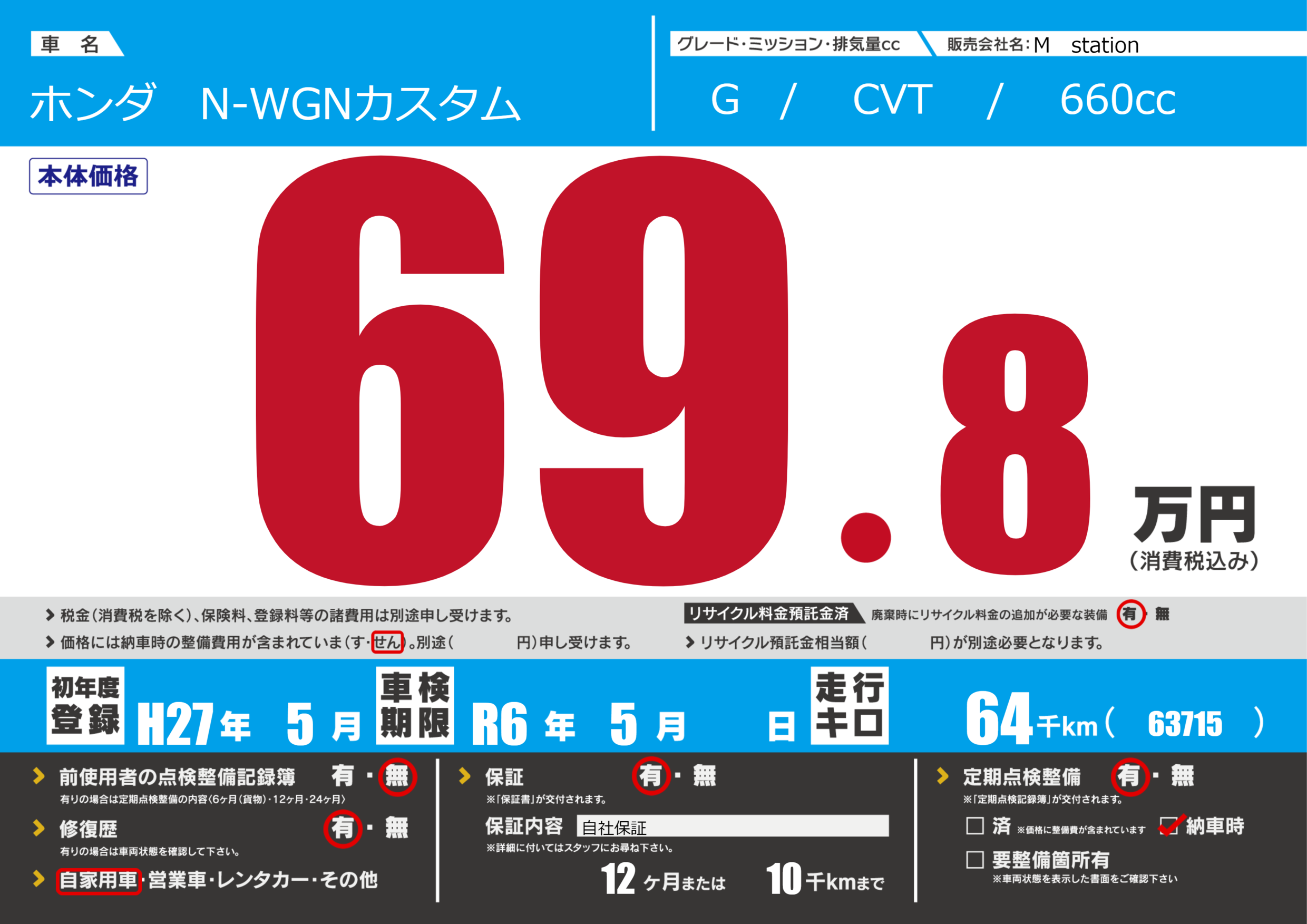 | 定期点検整備 | 定期点検整備あり 納車時あり | ||