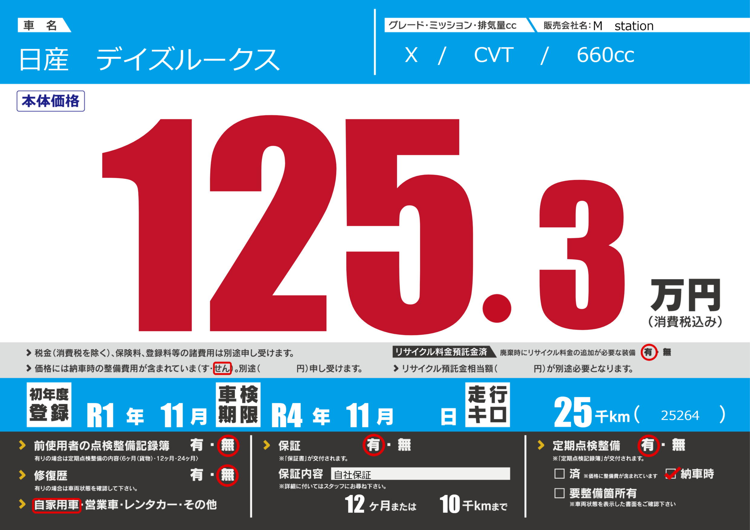なし | 車検制限 | R4年11月---月 |
