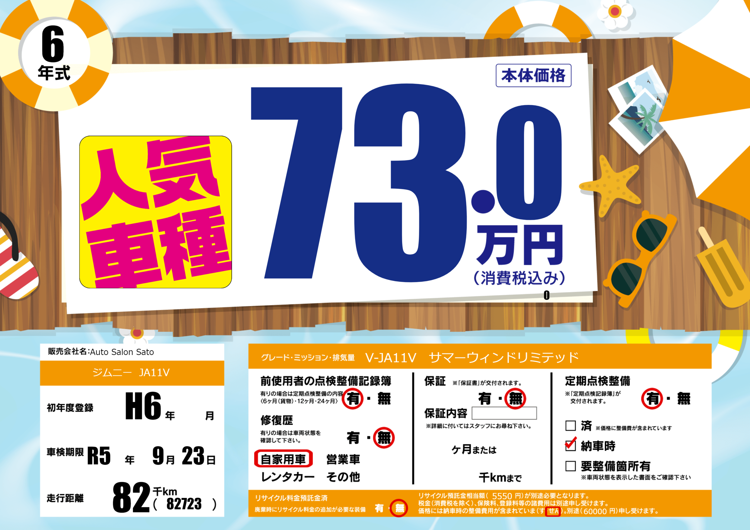 | 走行キロ | 8.2万km | 初年度登録 | H6年---月 |