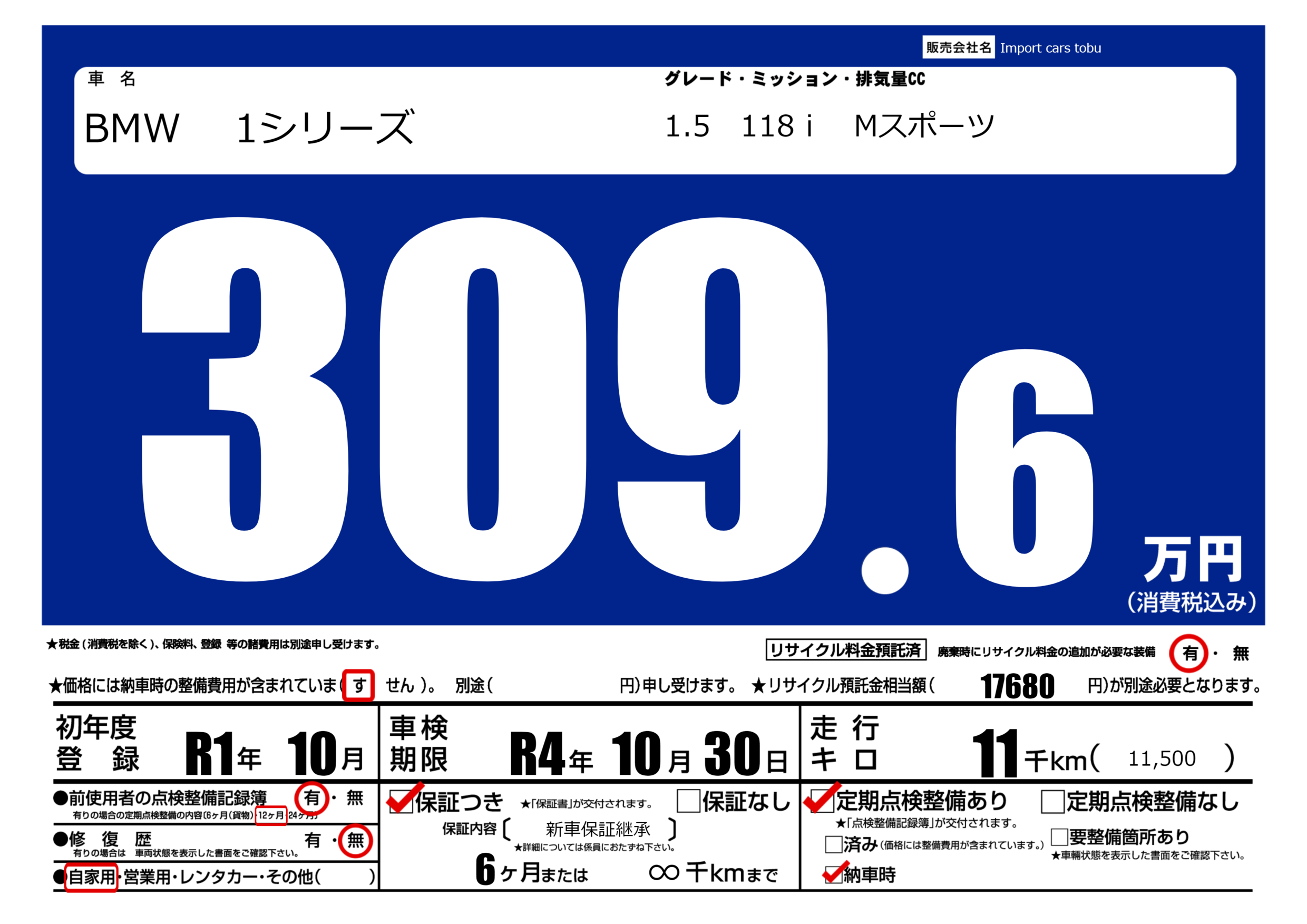 | 定期点検整備 | 定期点検整備あり 納車時あり | ||