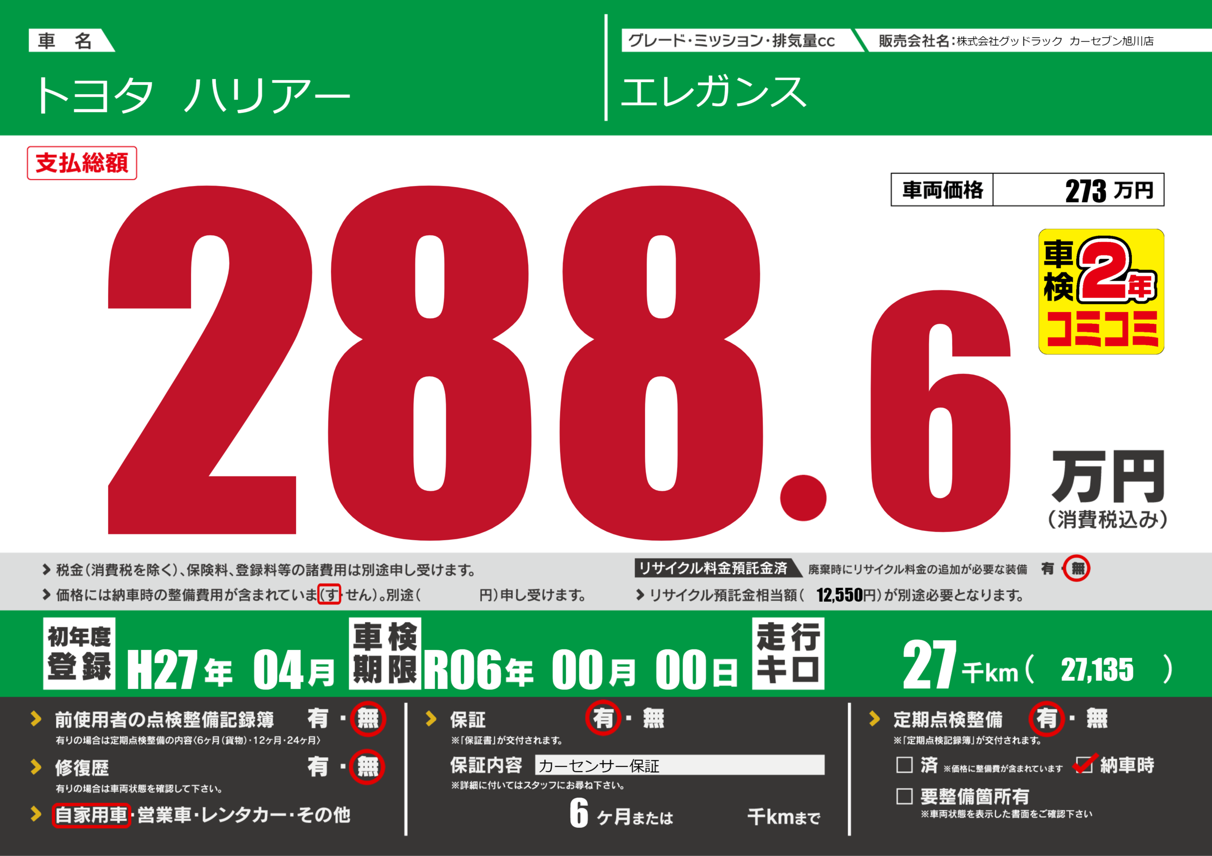 あり | 車検制限 | R06年00月00月 |