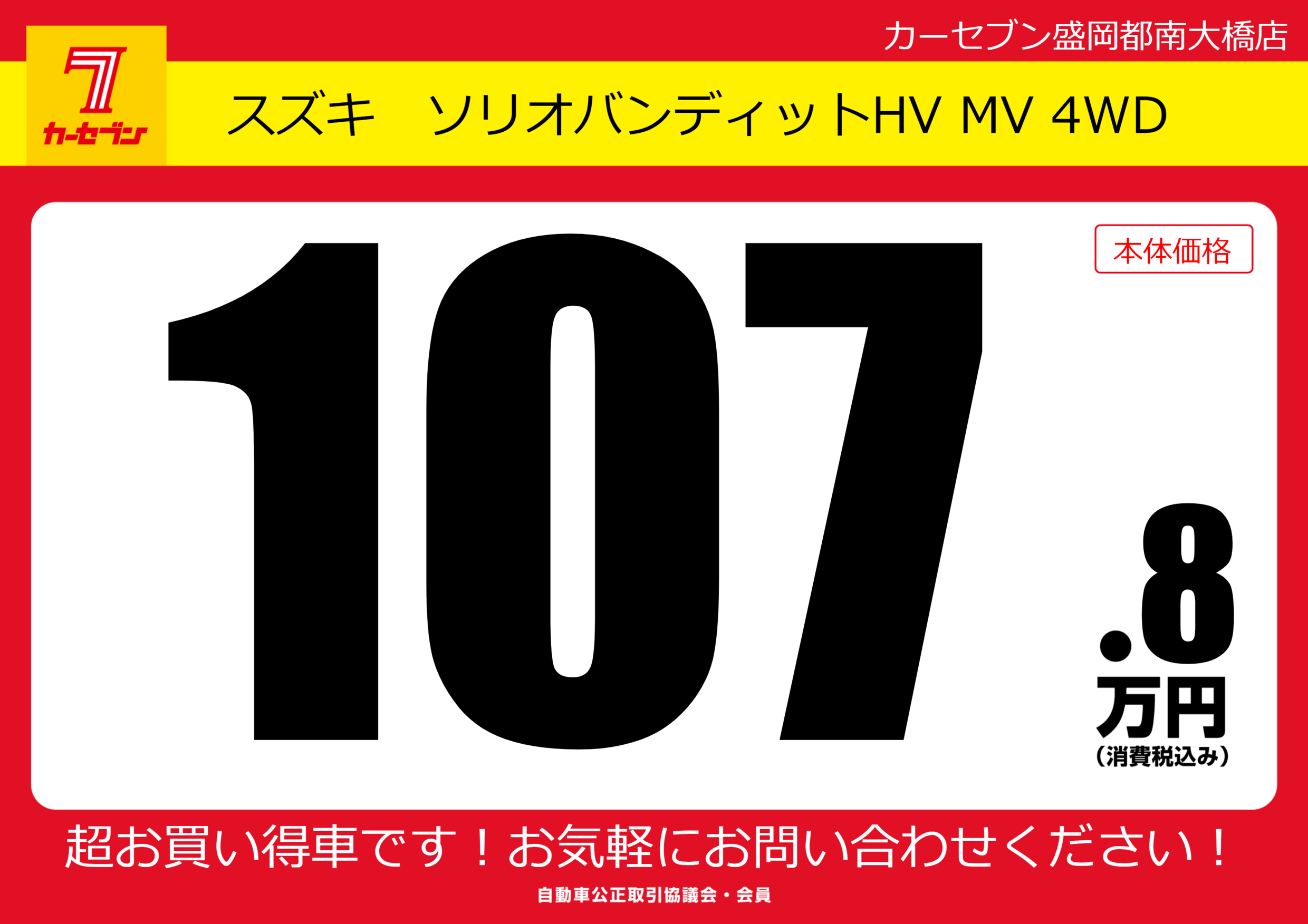| 車名 | スズキ ソリオバンディットHV MV 4WD | グレード ミッション 排気量 |