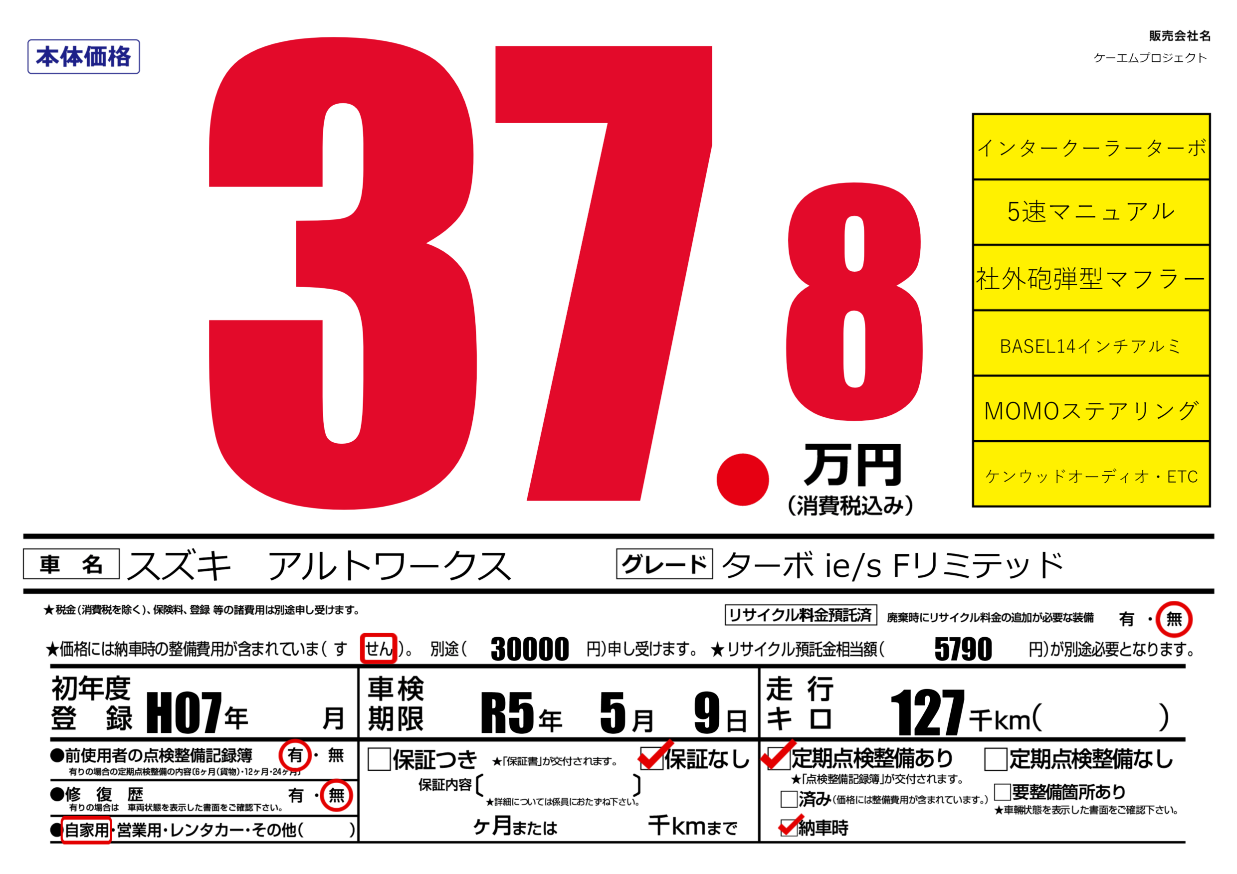 | 車検制限 | R5年 5月 9日 | ||