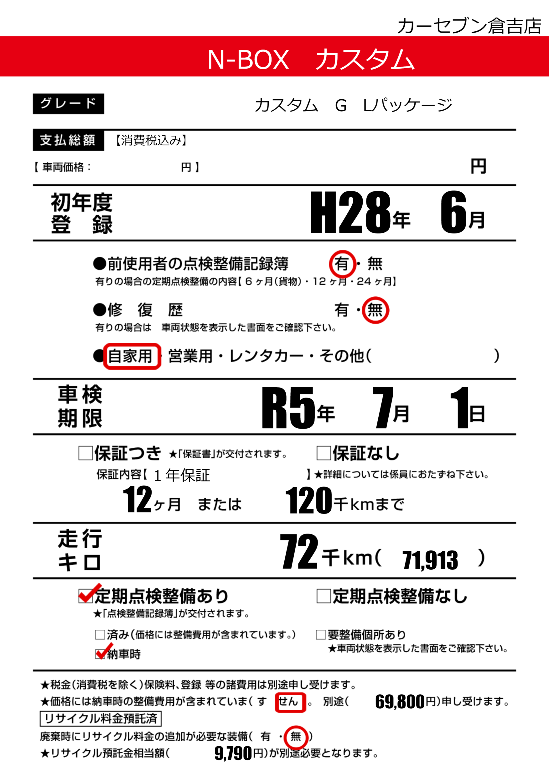 車検制限 | R5年7月1月 |
