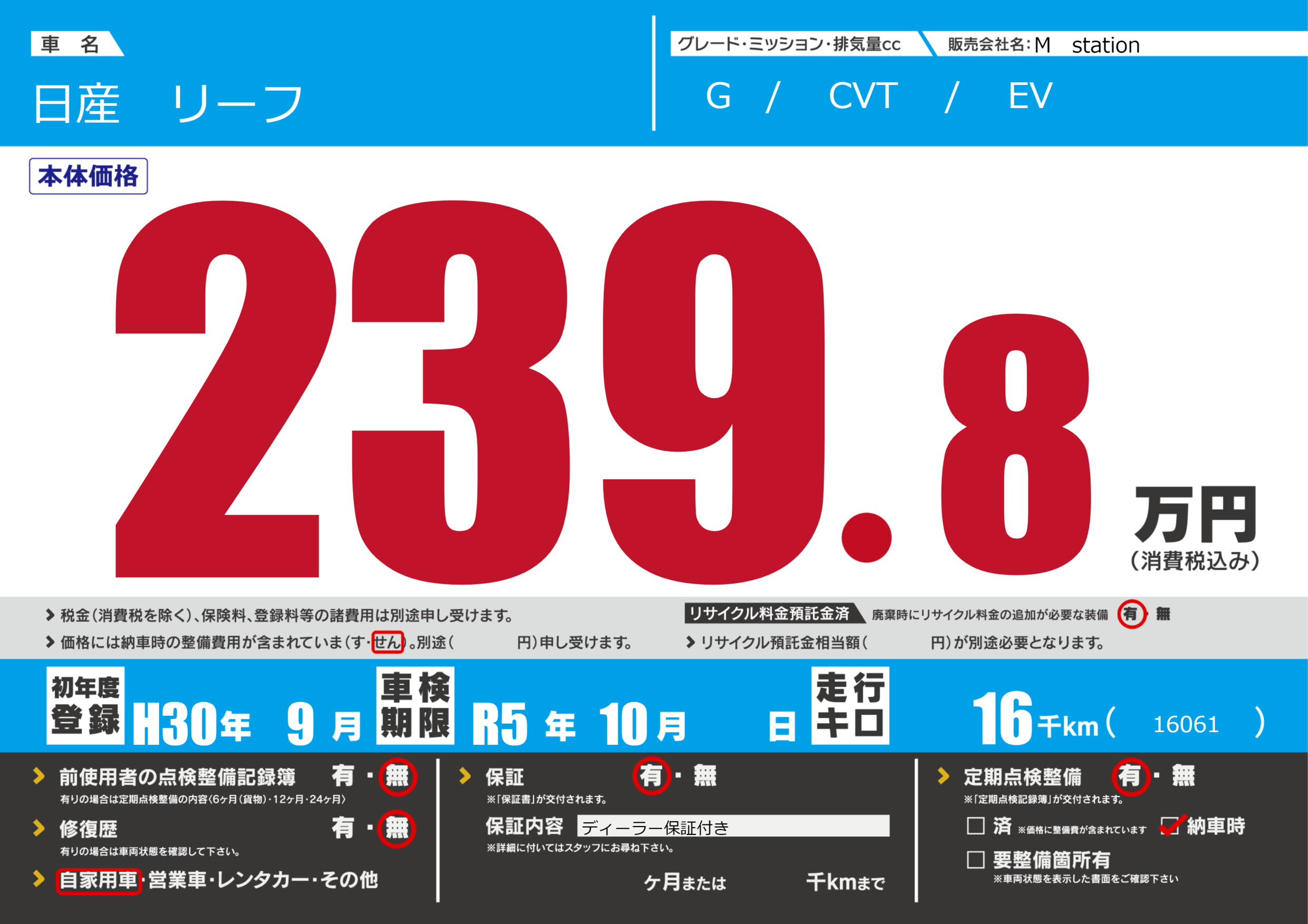 なし | 車検制限 | R5年10月---月 |