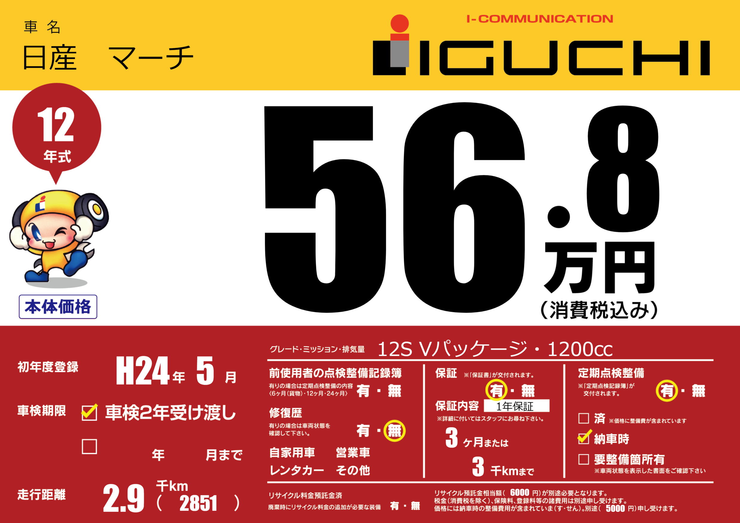 | 車名 | 日産 マーチ | グレード ミッション 排気量 |