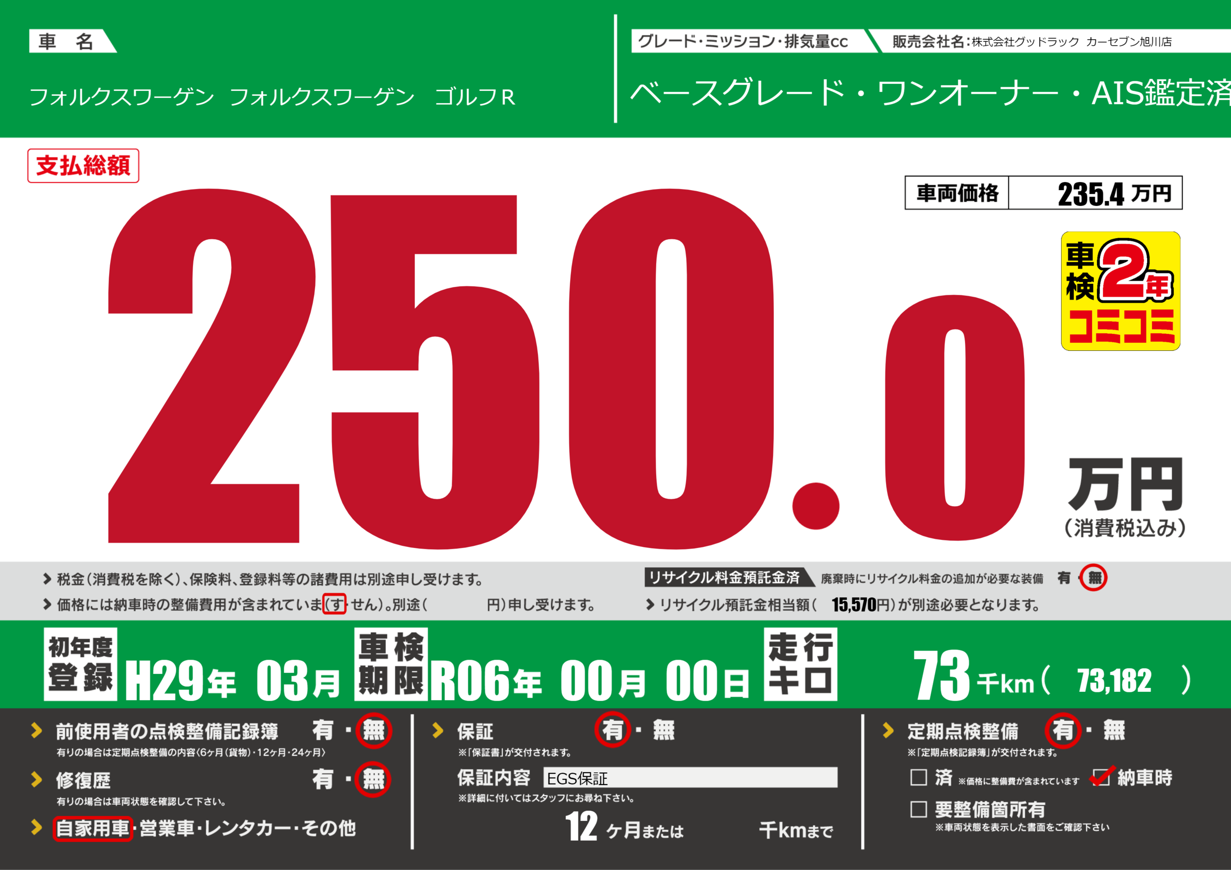 | 車検制限 | R06年 00月 00日 | ||