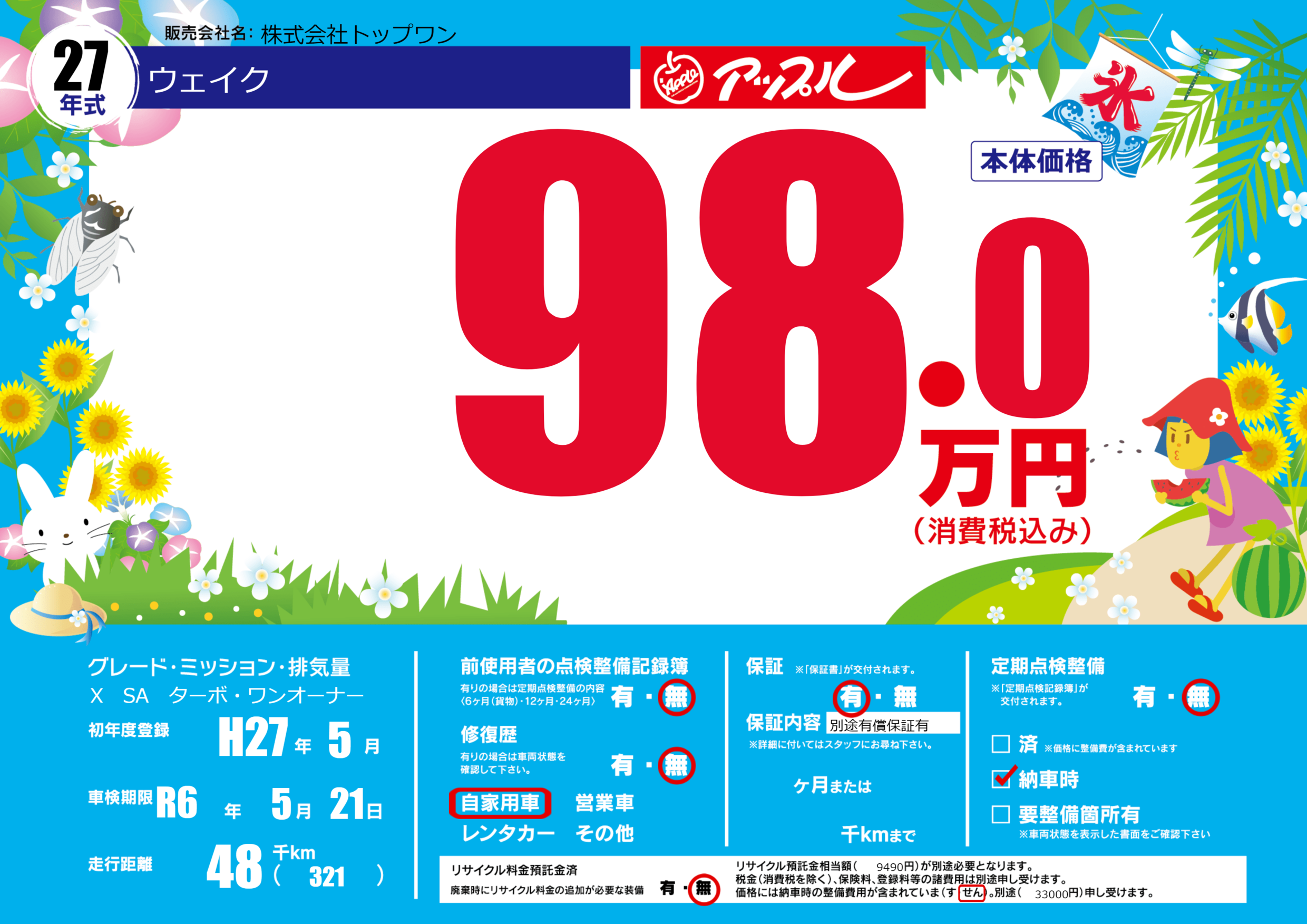 | 車名 | ウェイク | グレード ミッション 排気量 |