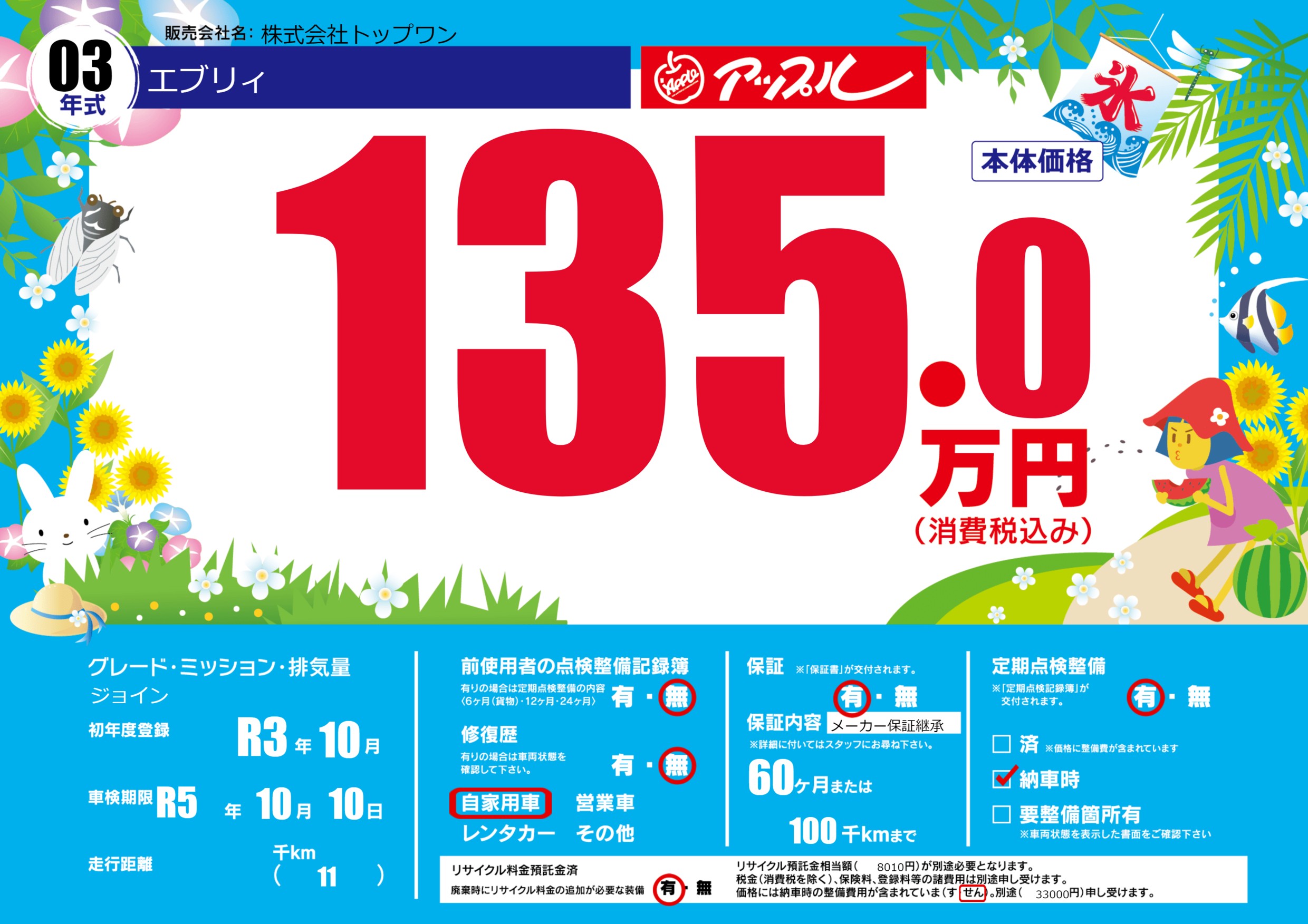 | 車検制限 | R5年 10月 10日 | ||