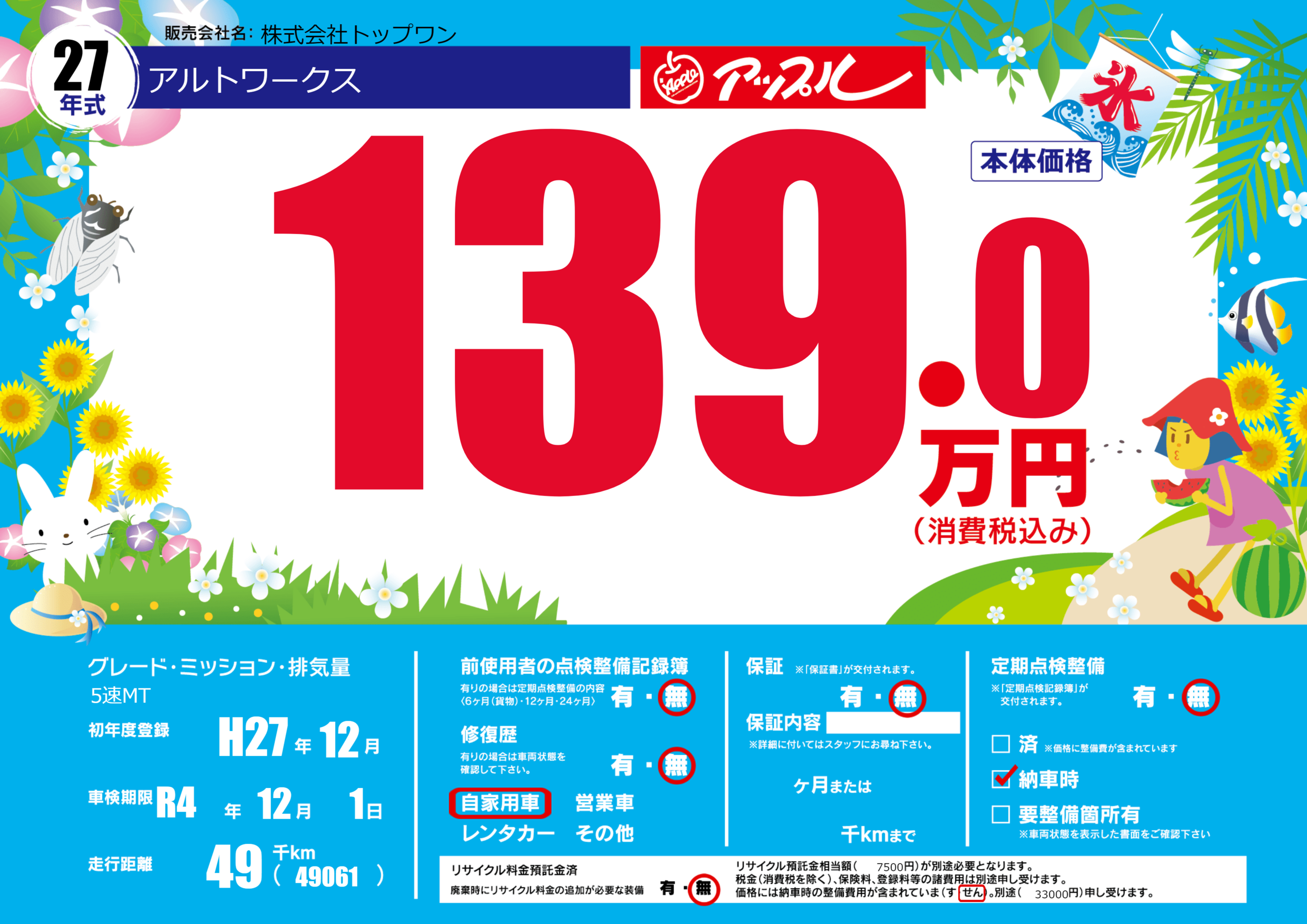| 車名 | アルトワークス | グレード ミッション 排気量 |