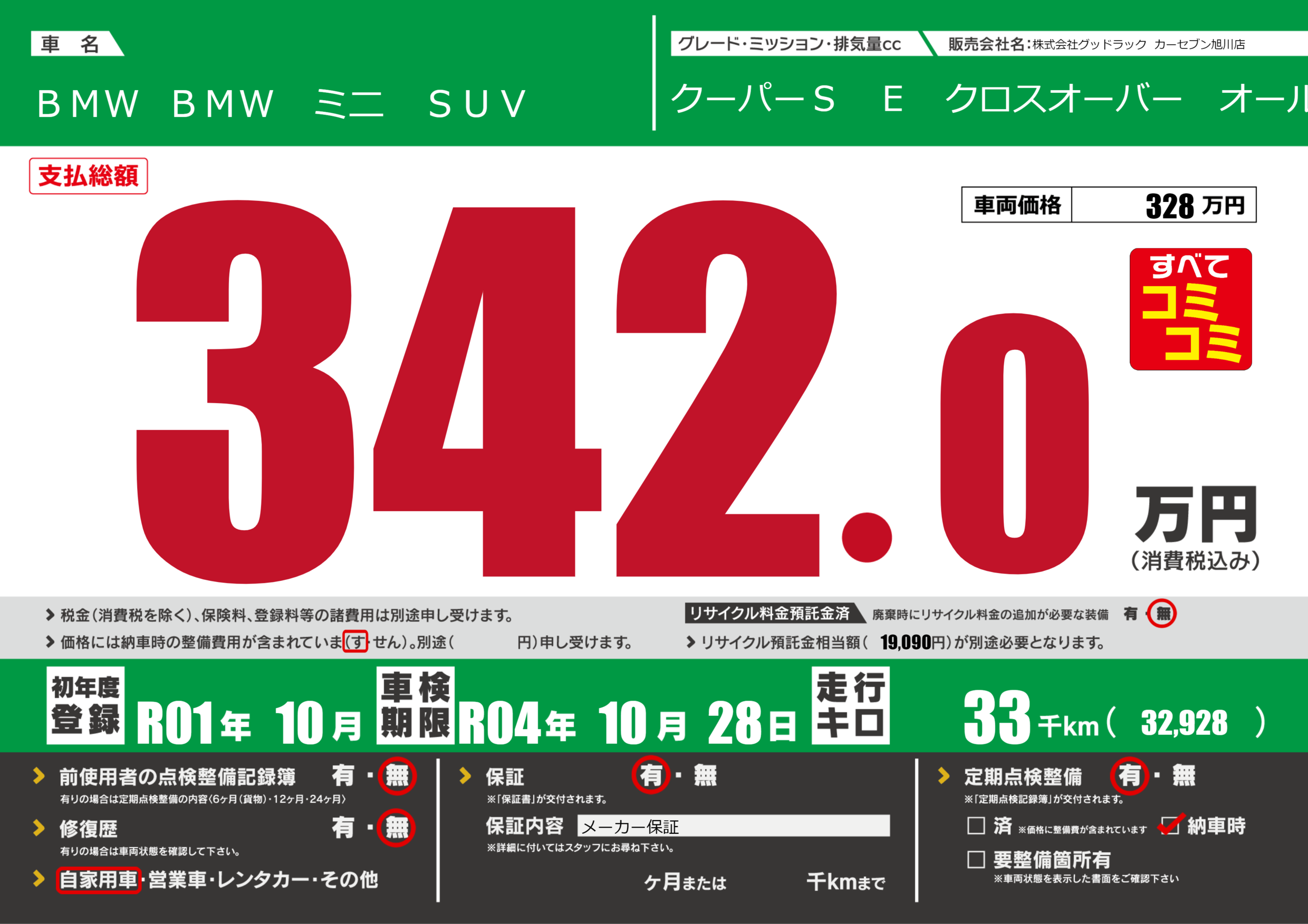| 車名 | BMW BMW ミニ SUV | グレード ミッション 排気量 |