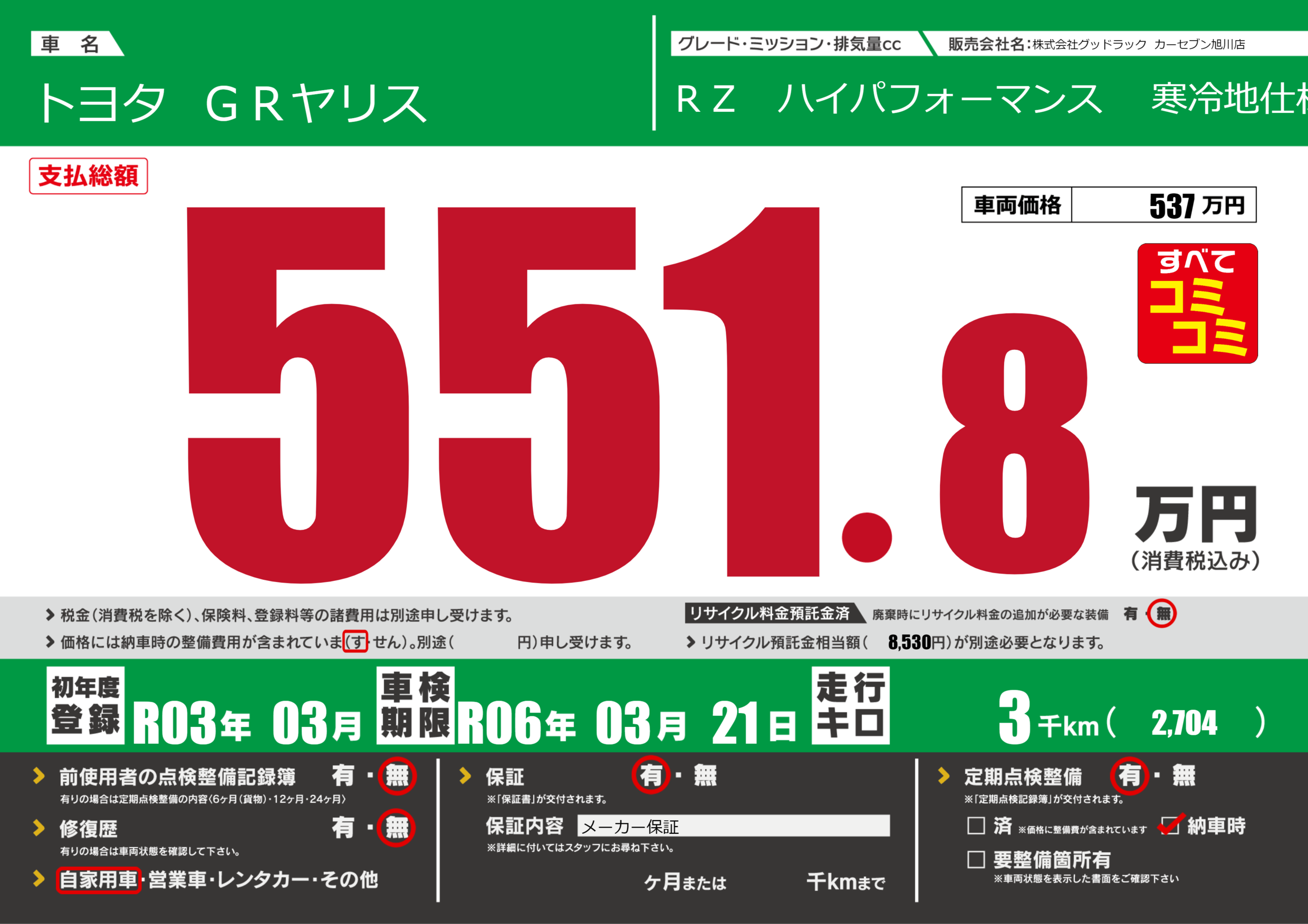 | 車検制限 | R06年 03月 21日 | ||