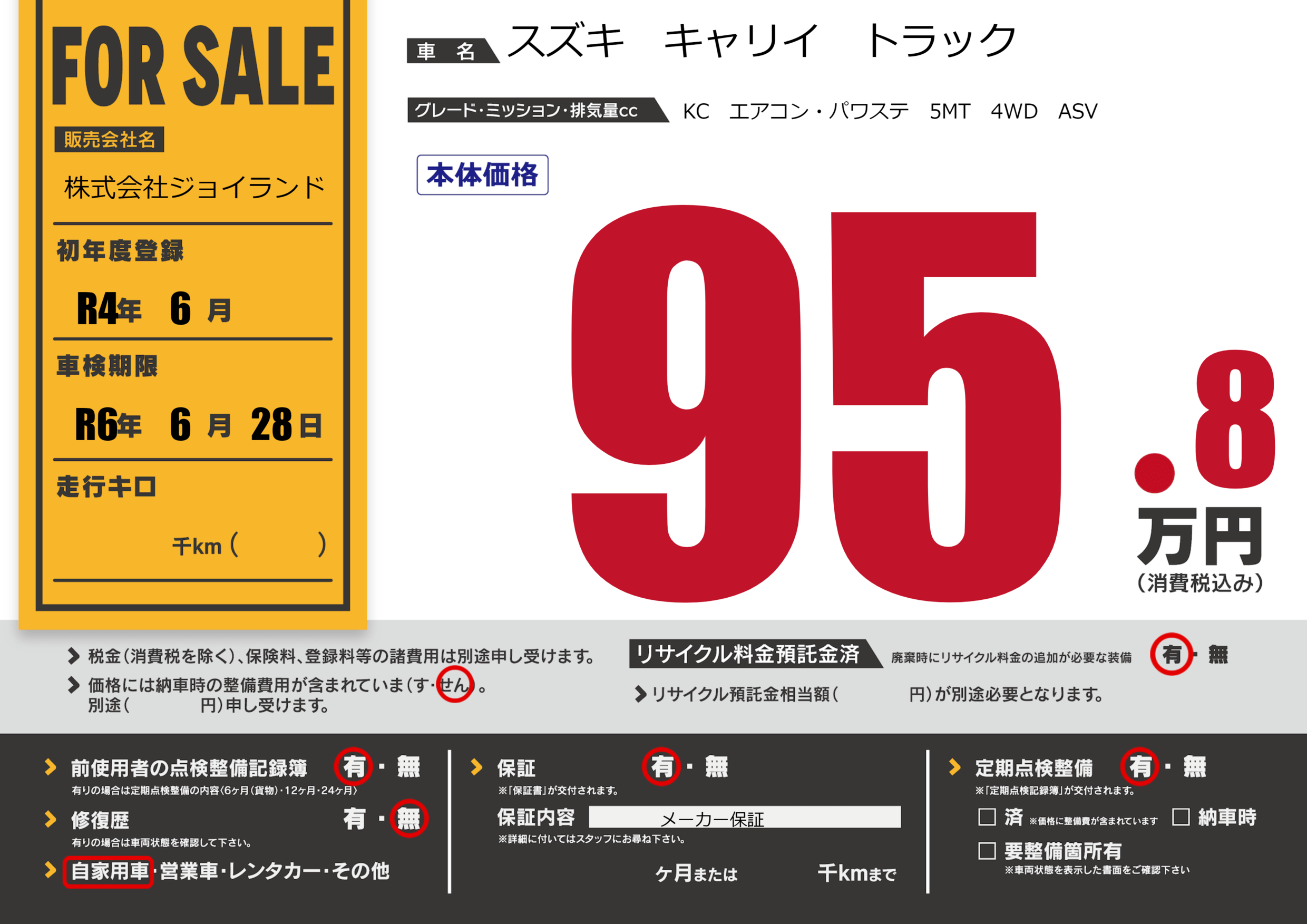 保証付き 保証内容( メーカー保証) ---ヶ月または()千kmまで |