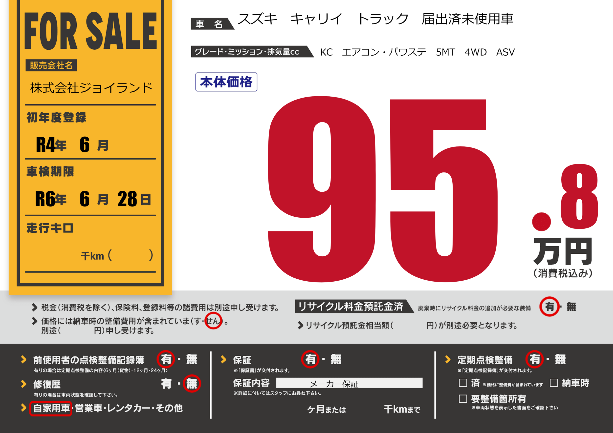 保証付き 保証内容( メーカー保証) ---ヶ月または()千kmまで |