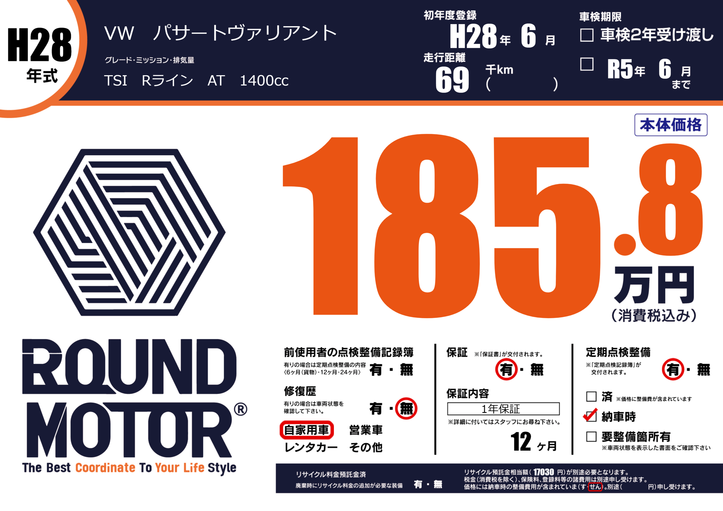 | 車名 | VW パサートヴァリアント | グレード ミッション 排気量 |