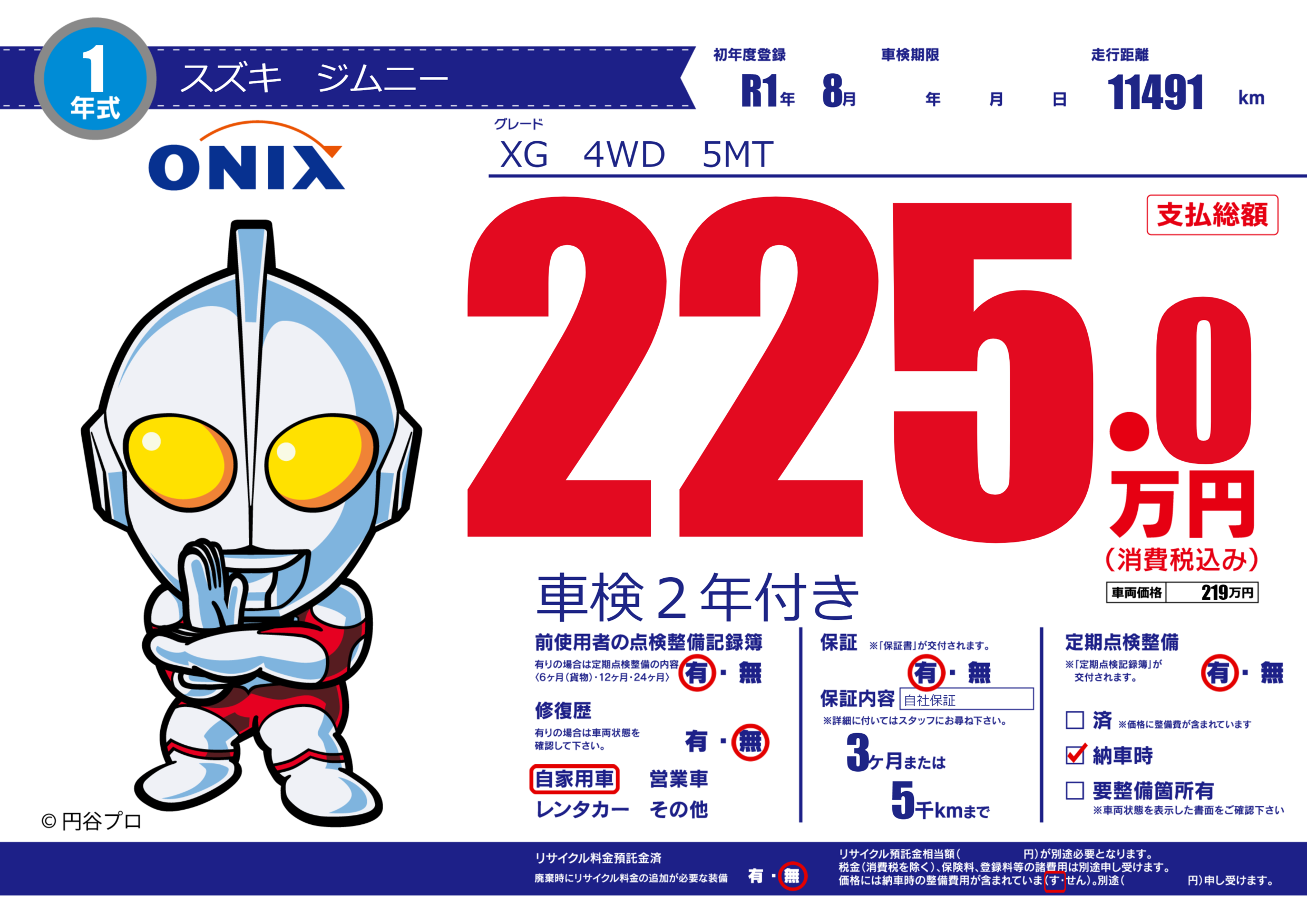 | 走行キロ | 1149.1万km | 初年度登録 | R1年8月 |