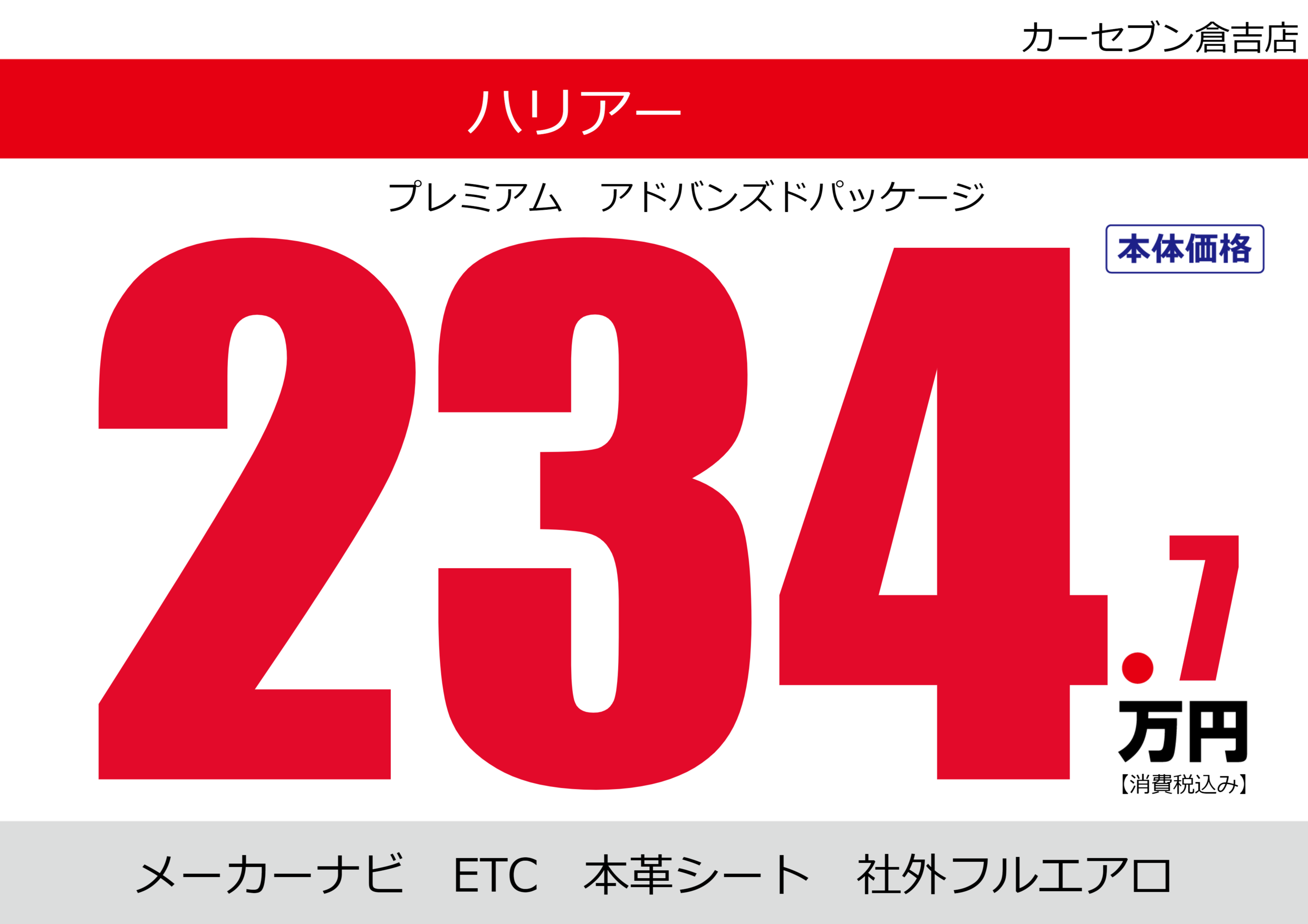 | 車名 | ハリアー | グレード ミッション 排気量 |