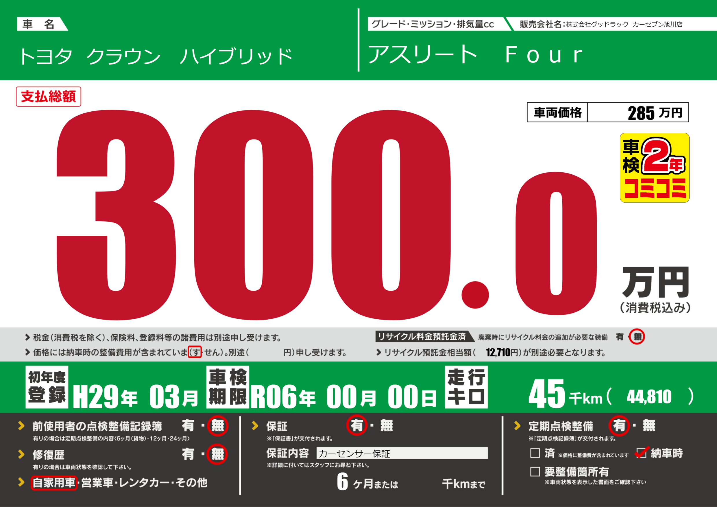 | 車名 | トヨタ クラウン ハイブリッド | グレード ミッション 排気量 |