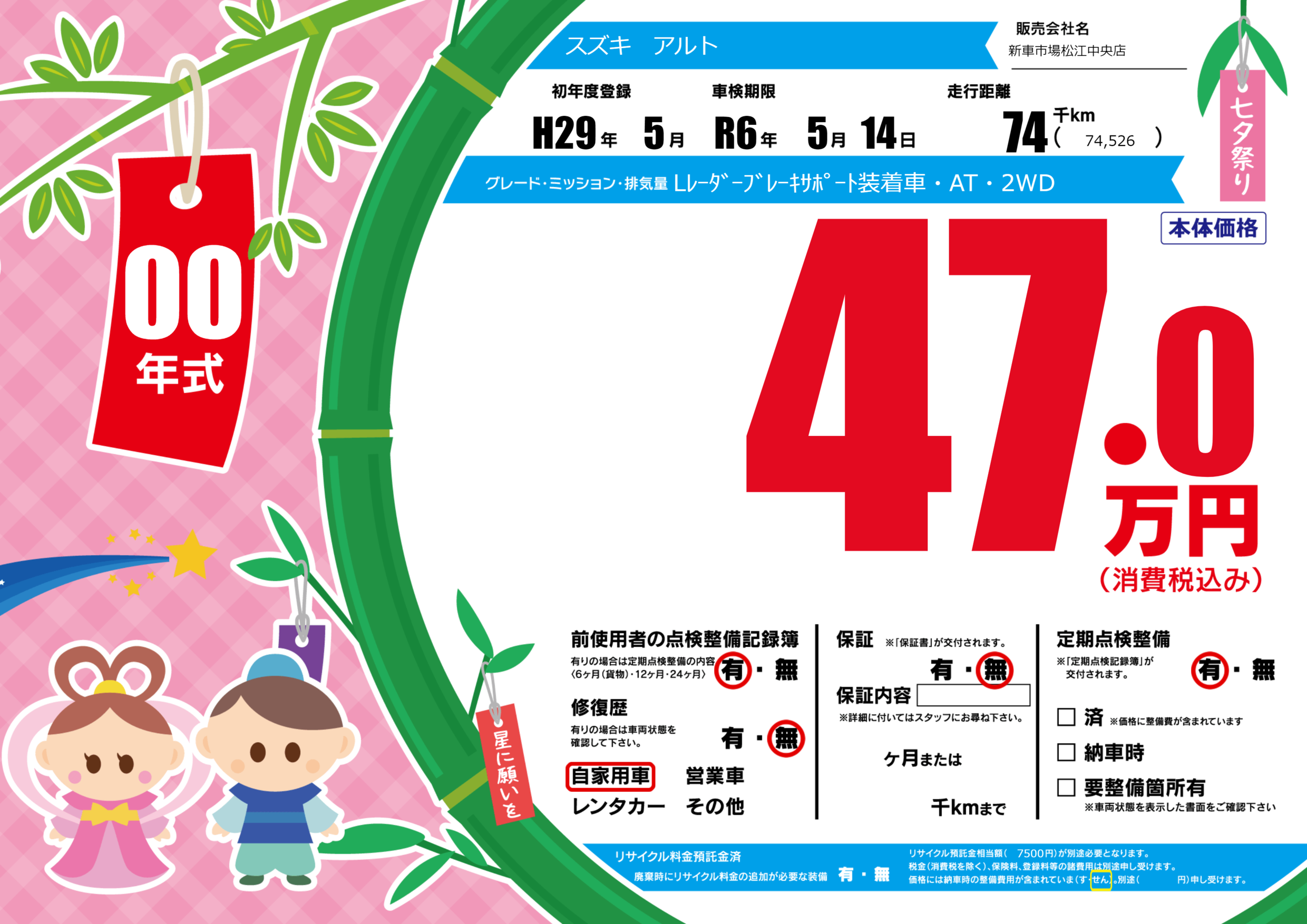 | 車名 | スズキ アルト | グレード ミッション 排気量 |