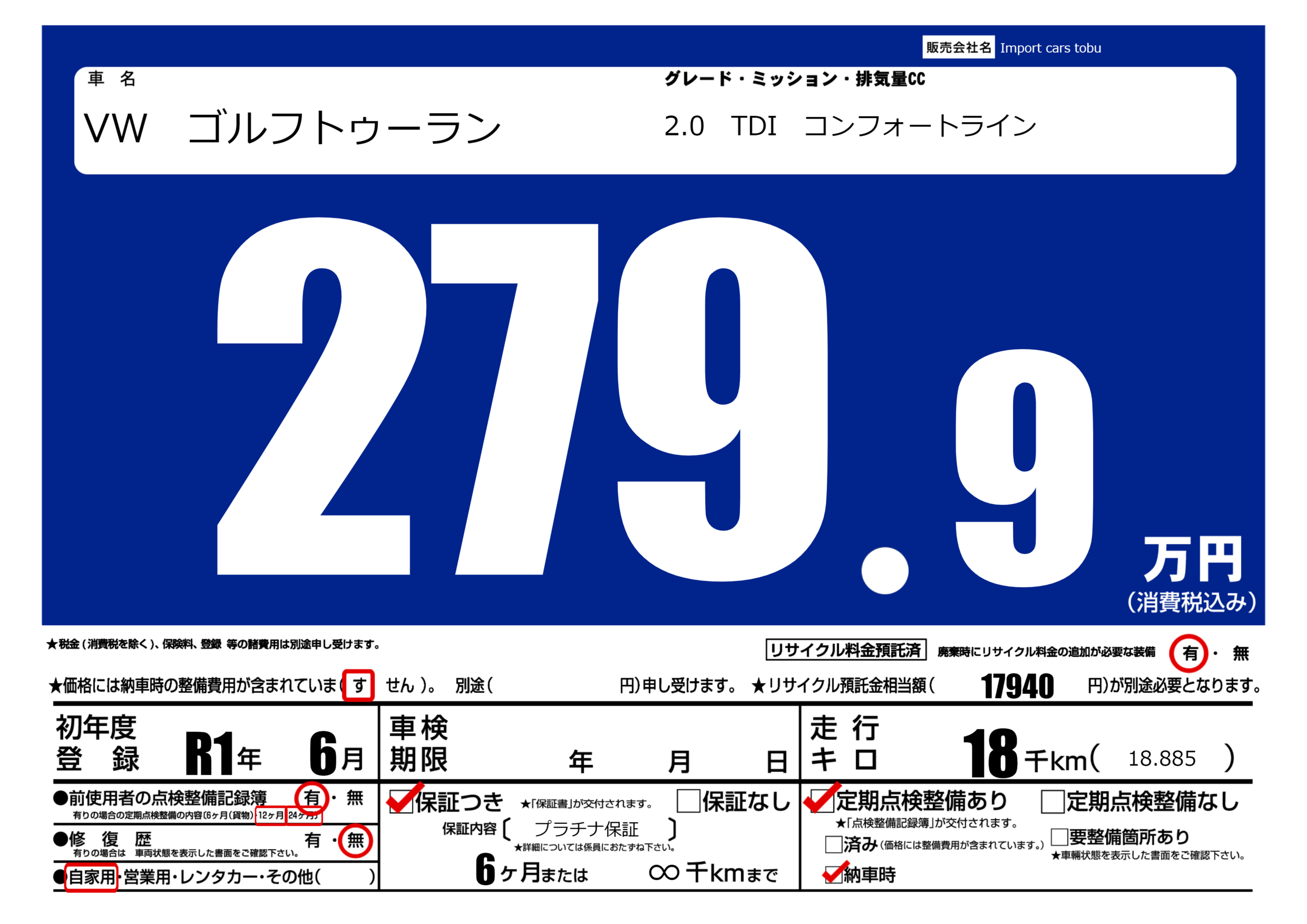 保証付き 保証内容( プラチナ保証) 6ヶ月または(∞)千kmまで |