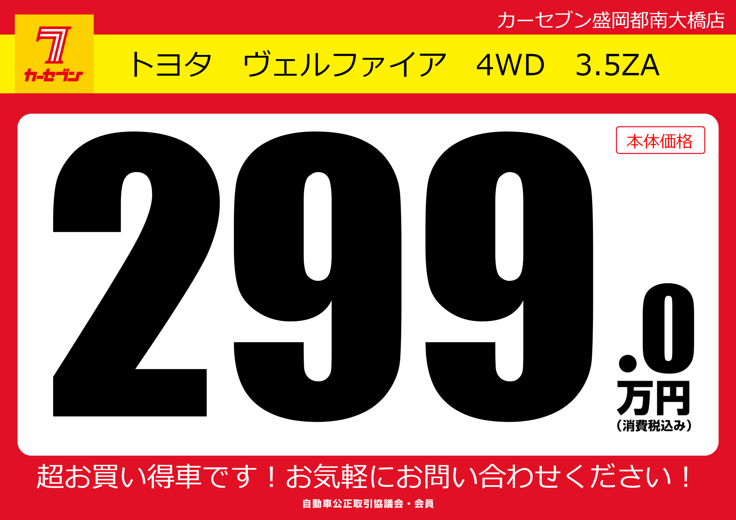 | 車名 | トヨタ ヴェルファイア 4WD 3.5ZA | グレード ミッション 排気量 |
