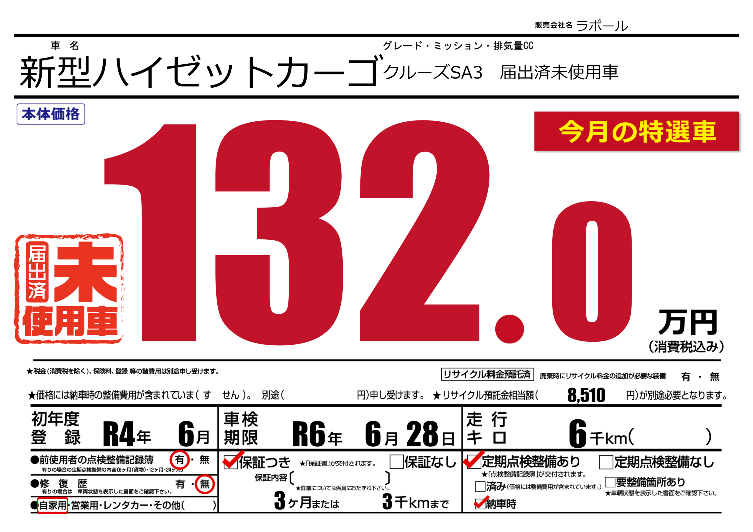 なし | 車検制限 | R6年6月28月 |