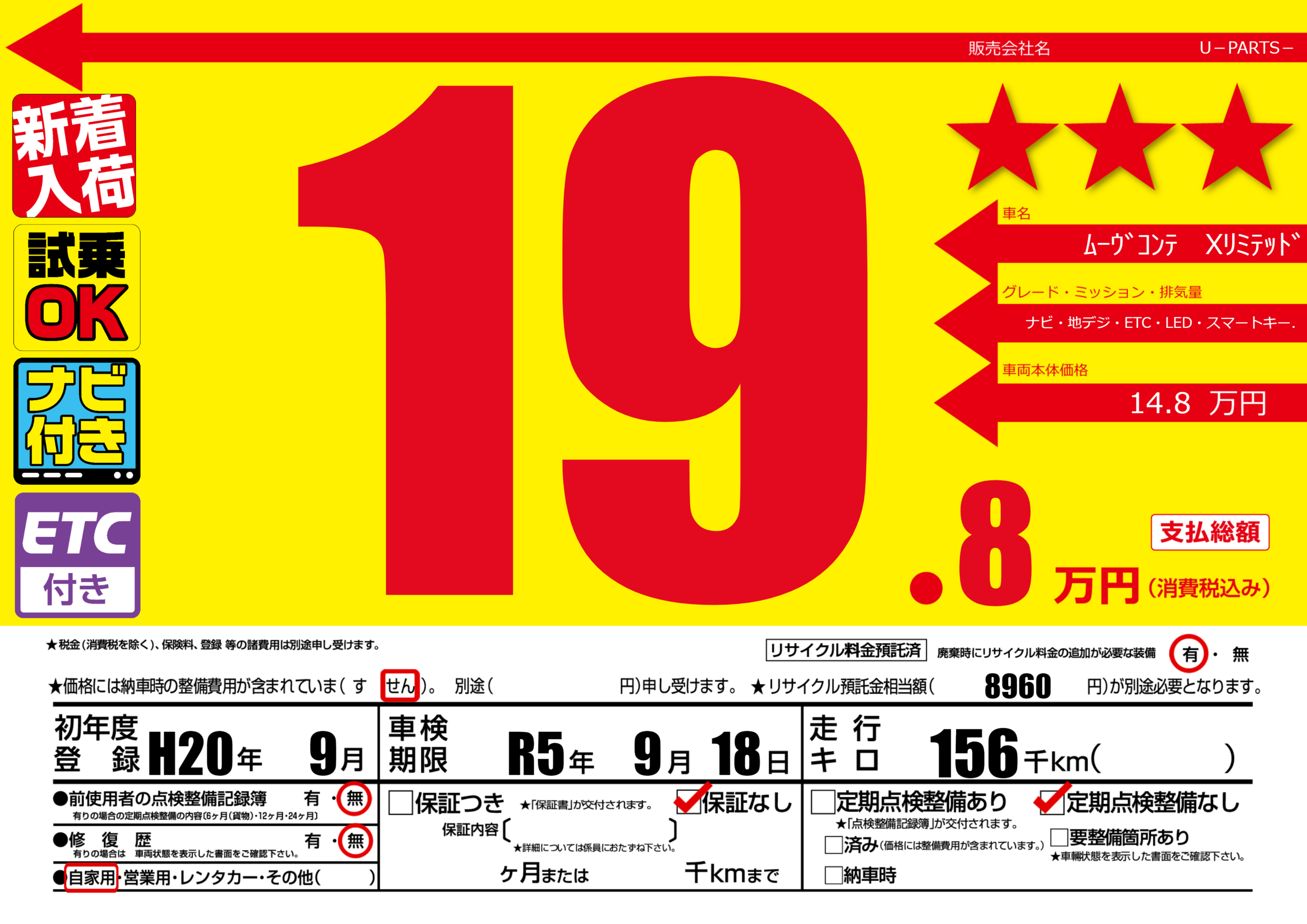 なし | 車検制限 | R5年9月18月 |