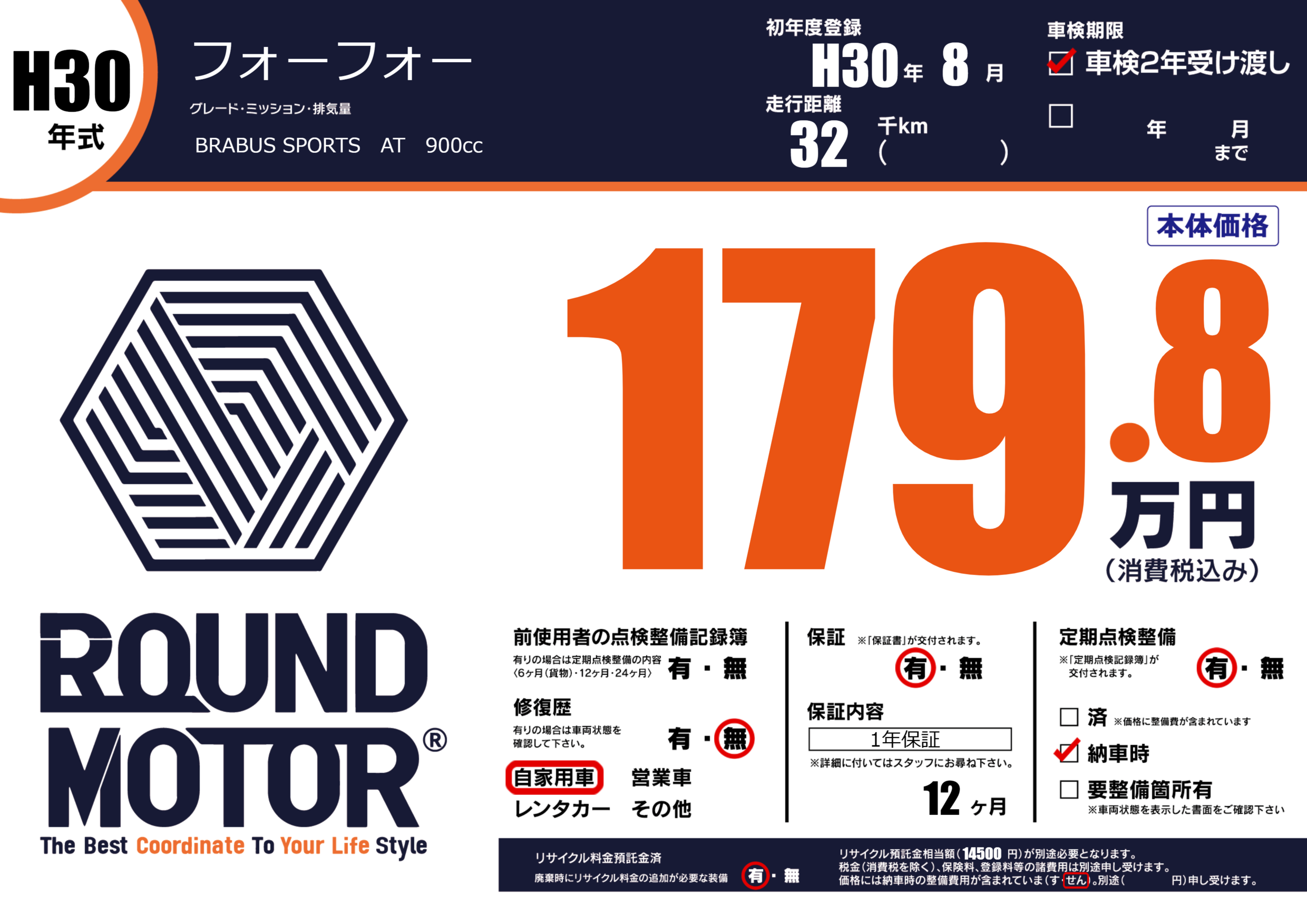 保証付き 保証内容(1年保証) 12ヶ月または()千kmまで |