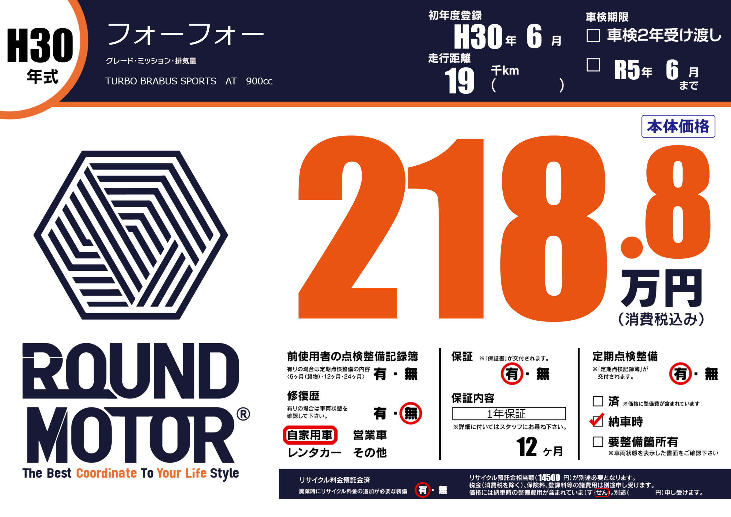 | 車名 | フォーフォー | グレード ミッション 排気量 |