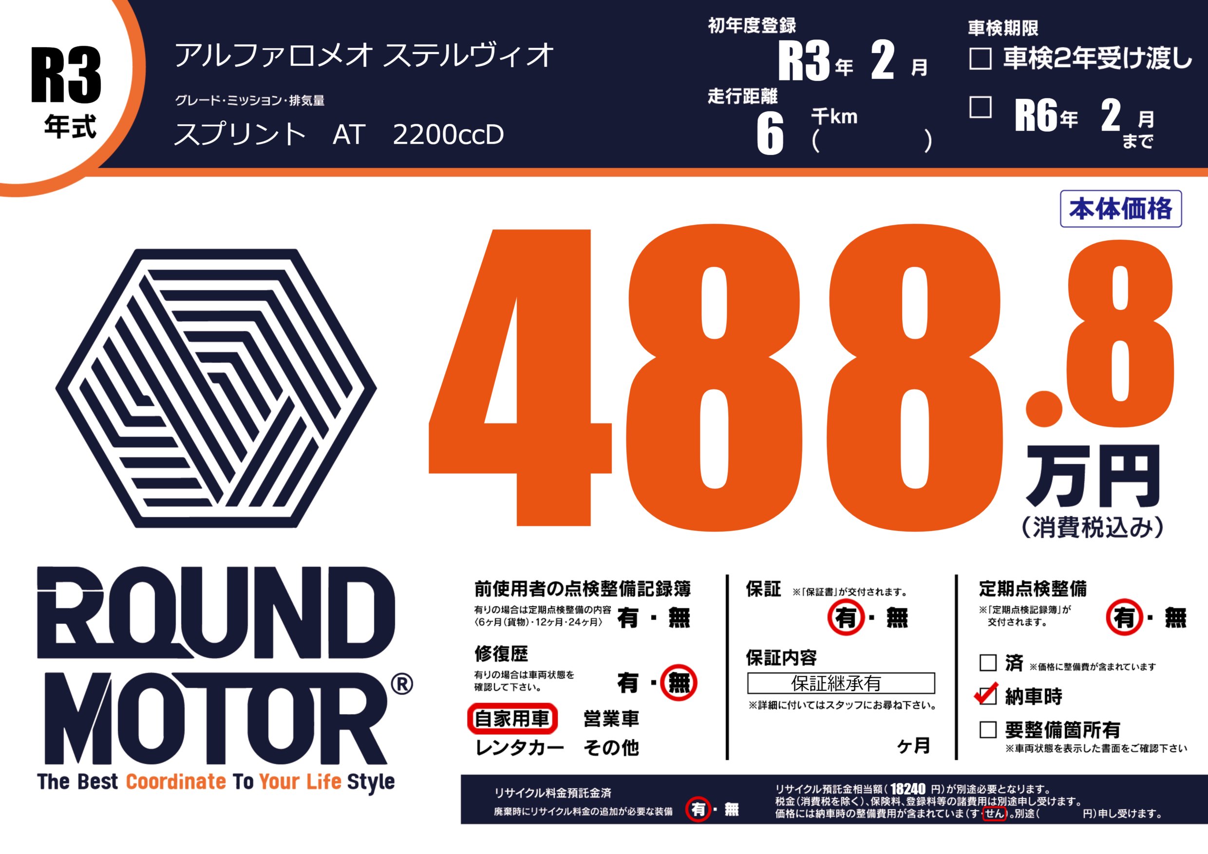 なし | 車検制限 | R6年2月---月 |