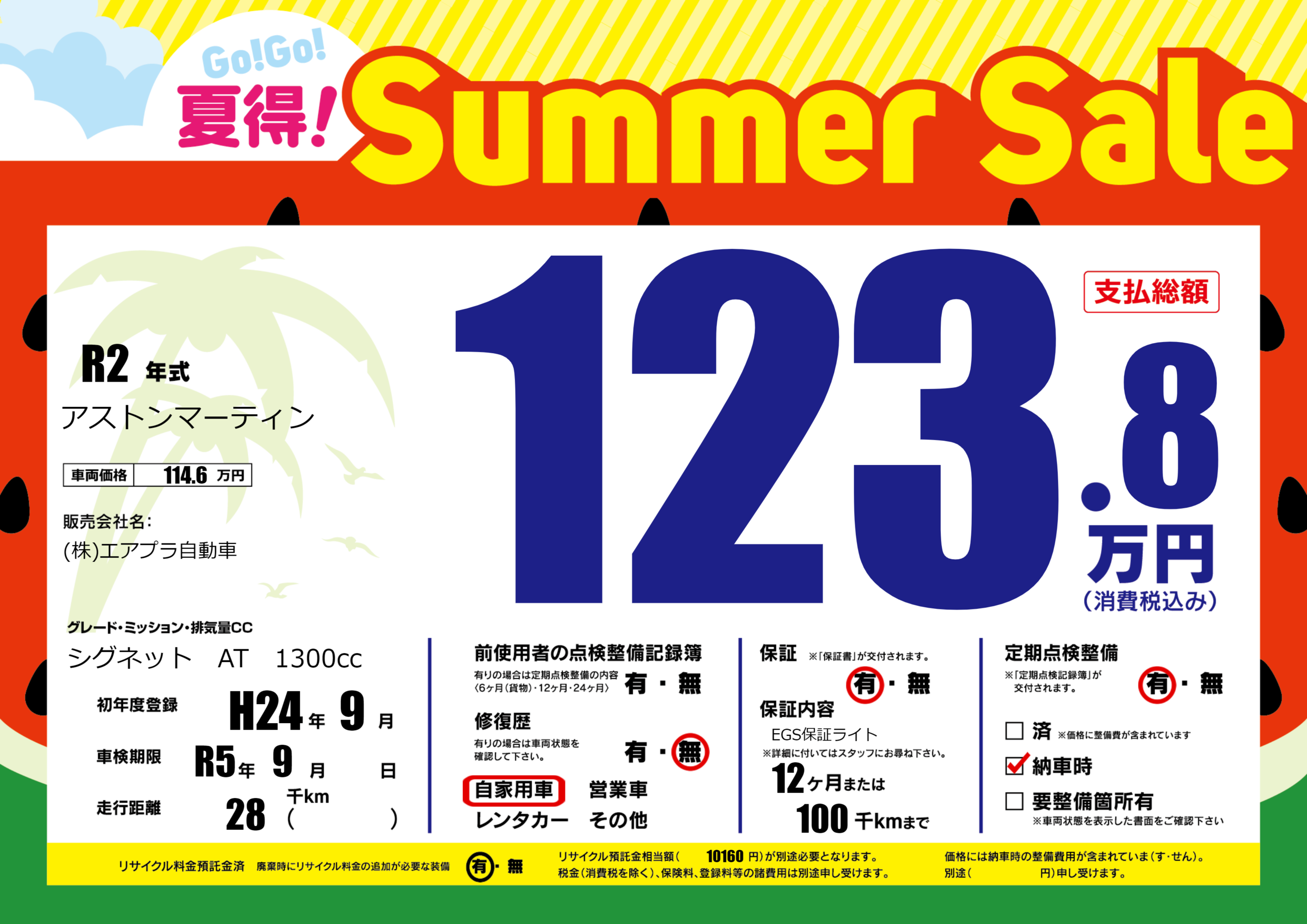 | 走行キロ | 2.8万km | 初年度登録 | H24年9月 |