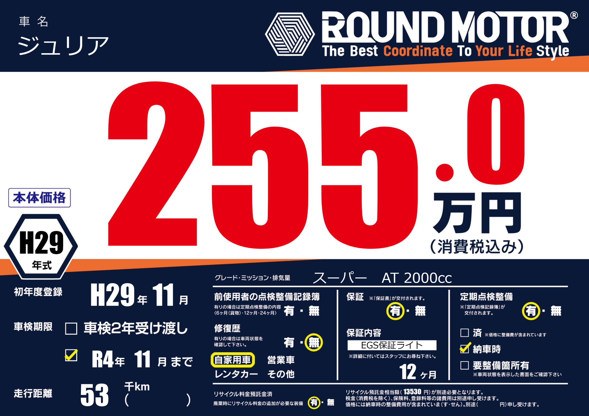 | 車名 | ジュリア | グレード ミッション 排気量 |