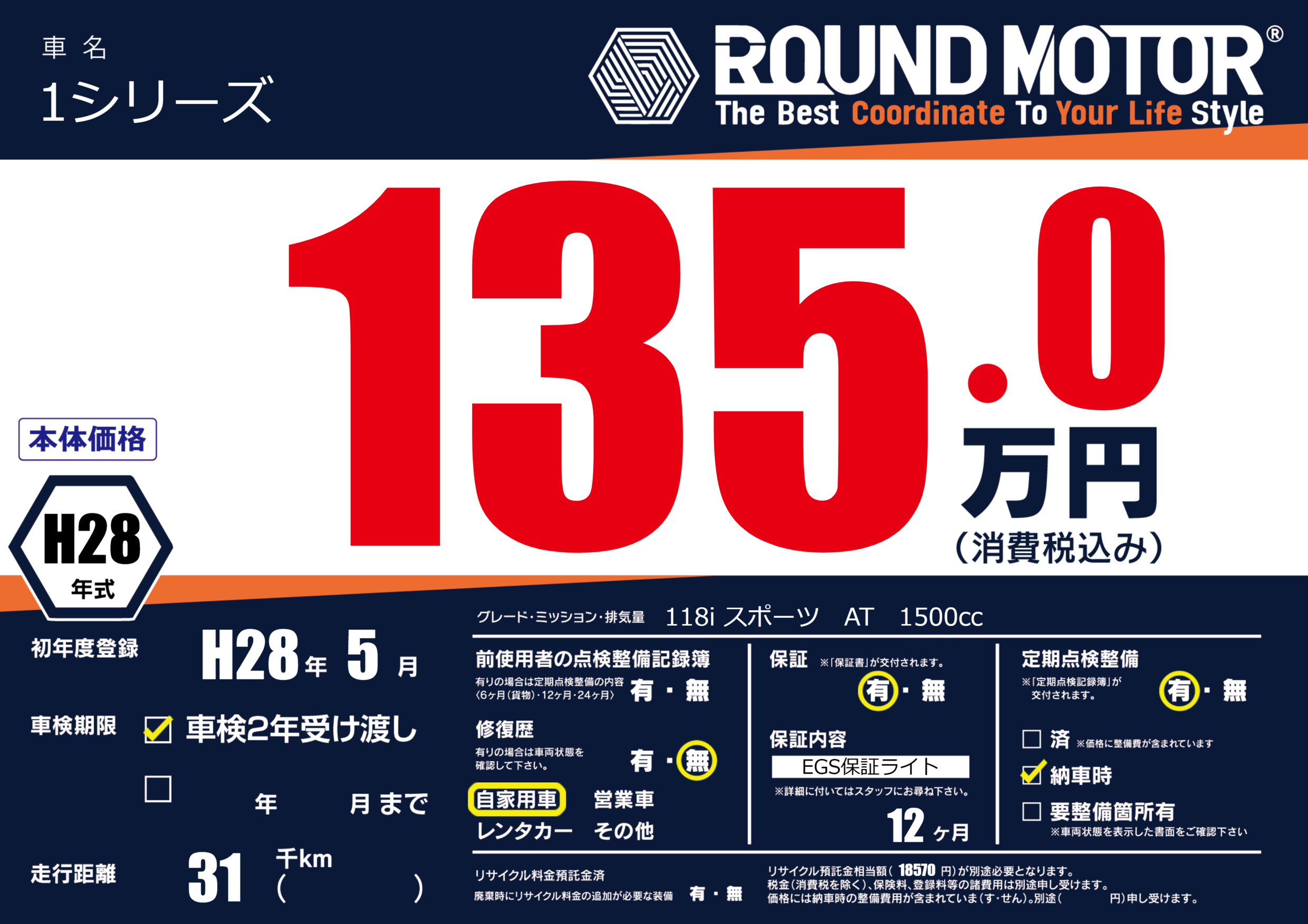 | 車名 | 1シリーズ | グレード ミッション 排気量 |