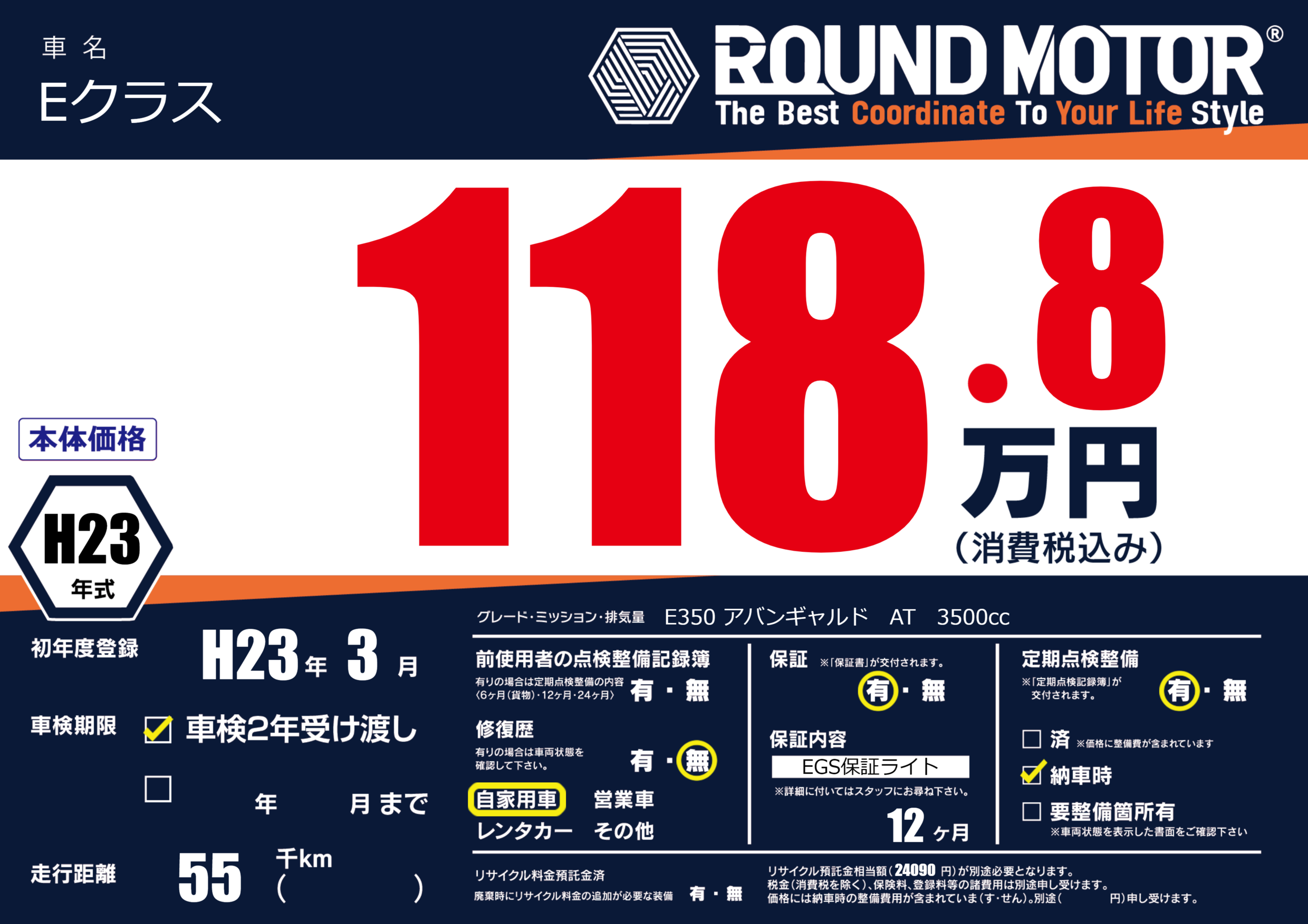 | 車名 | Eクラス | グレード ミッション 排気量 |