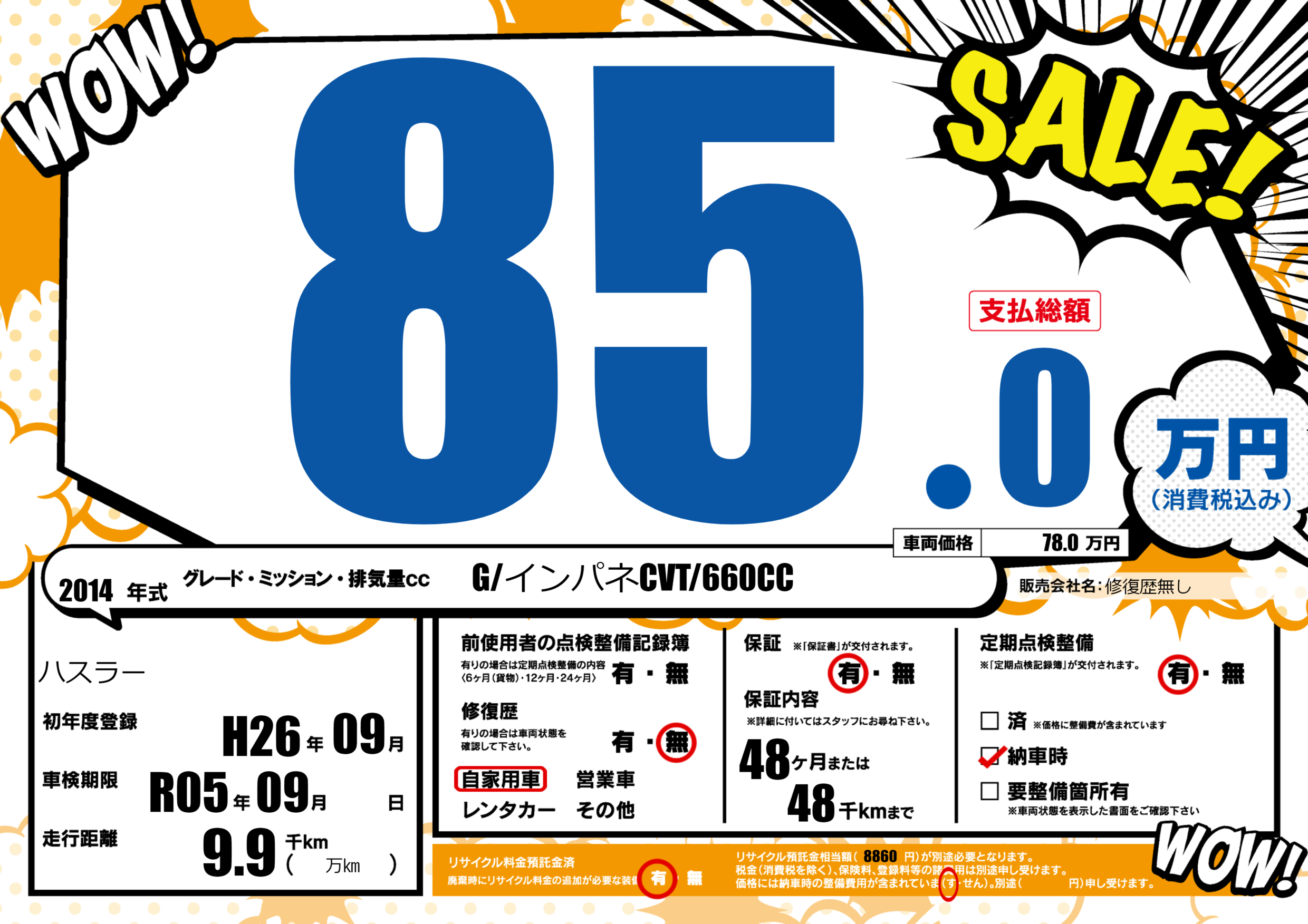 | 車名 | ハスラー | グレード ミッション 排気量 |
