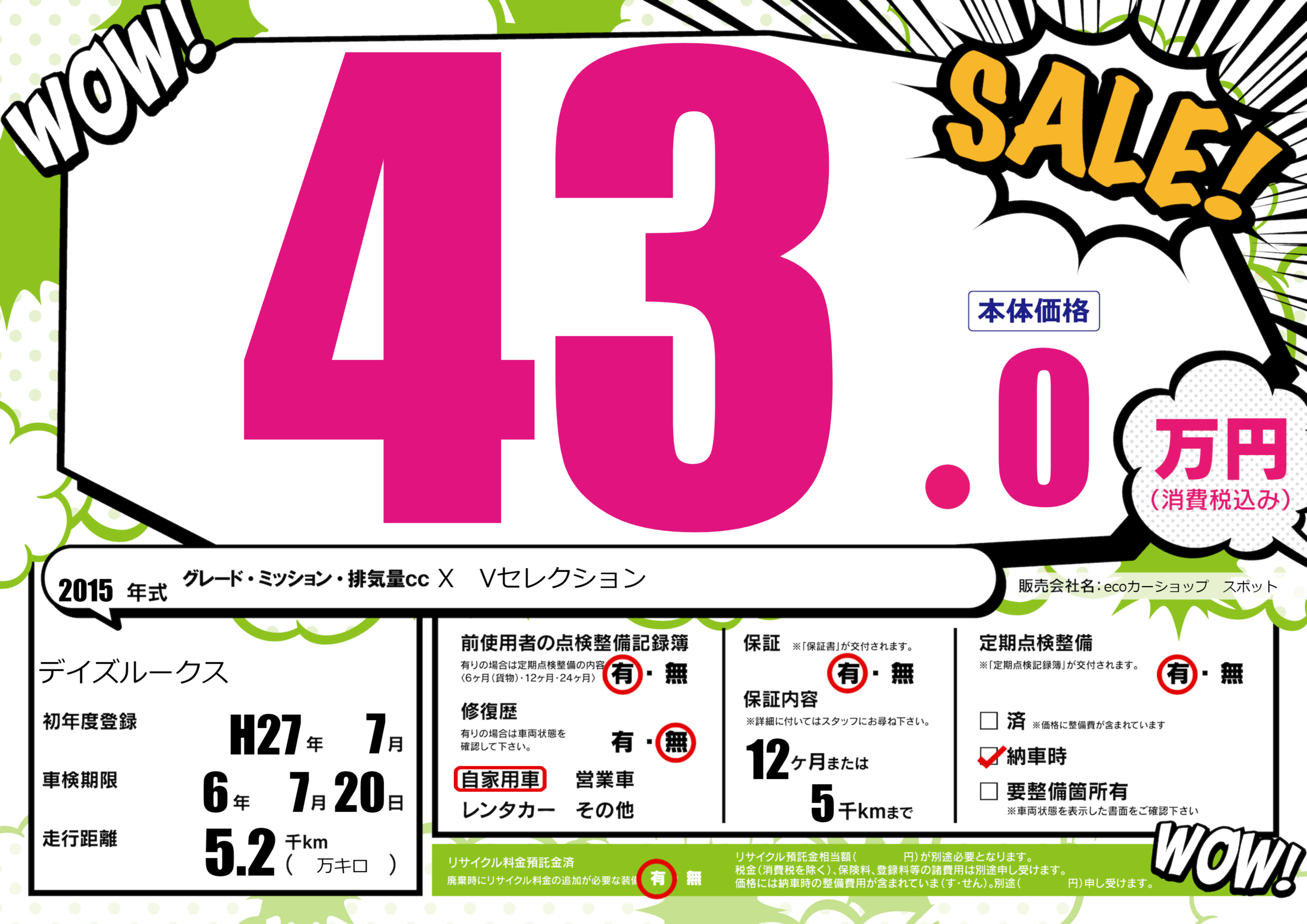 | 初年度登録 | H27年7月 | ||