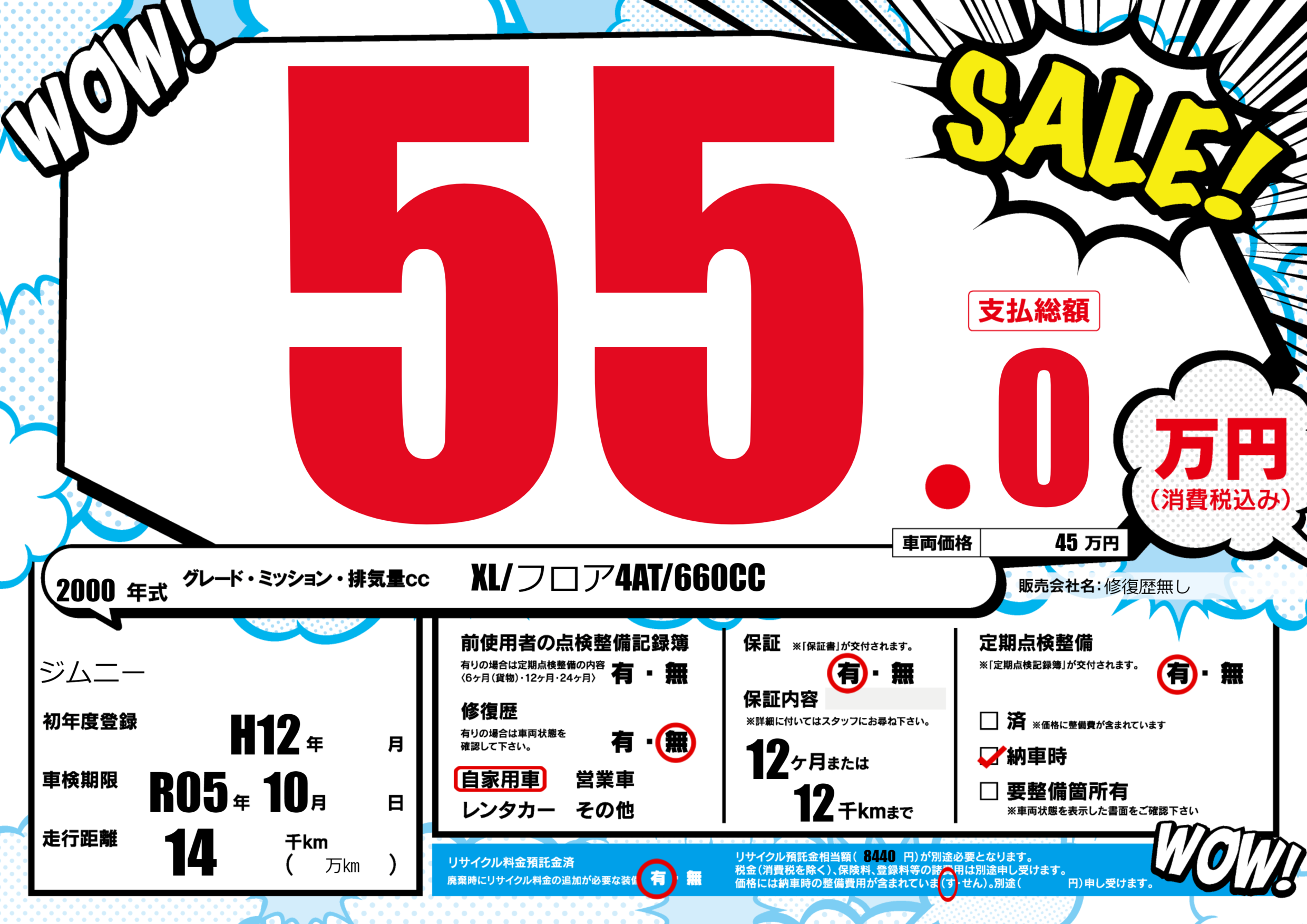 保証付き 保証内容(---) 12ヶ月または(12)千kmまで |