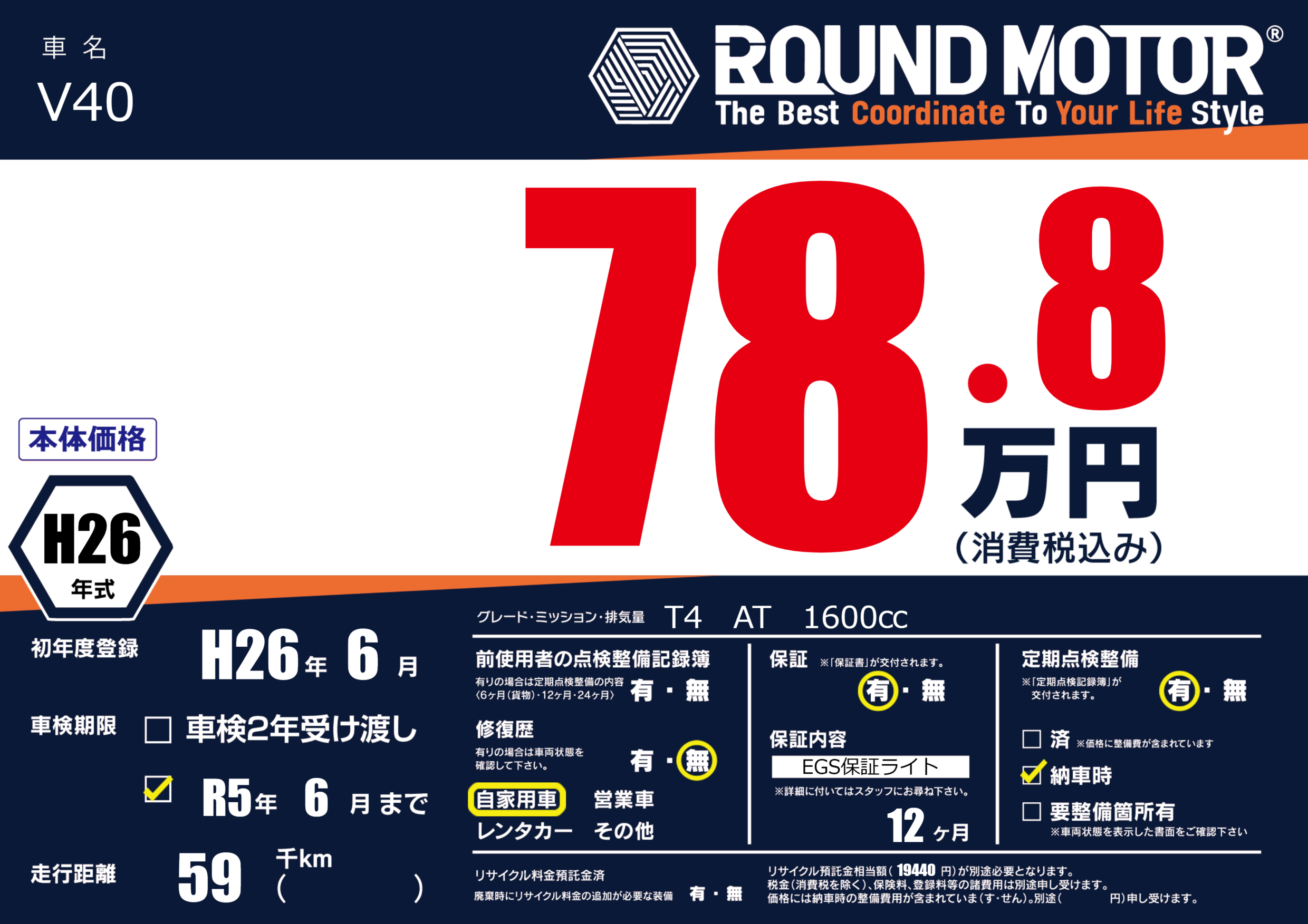 保証付き 保証内容(EGS保証ライト) 12ヶ月または()千kmまで |