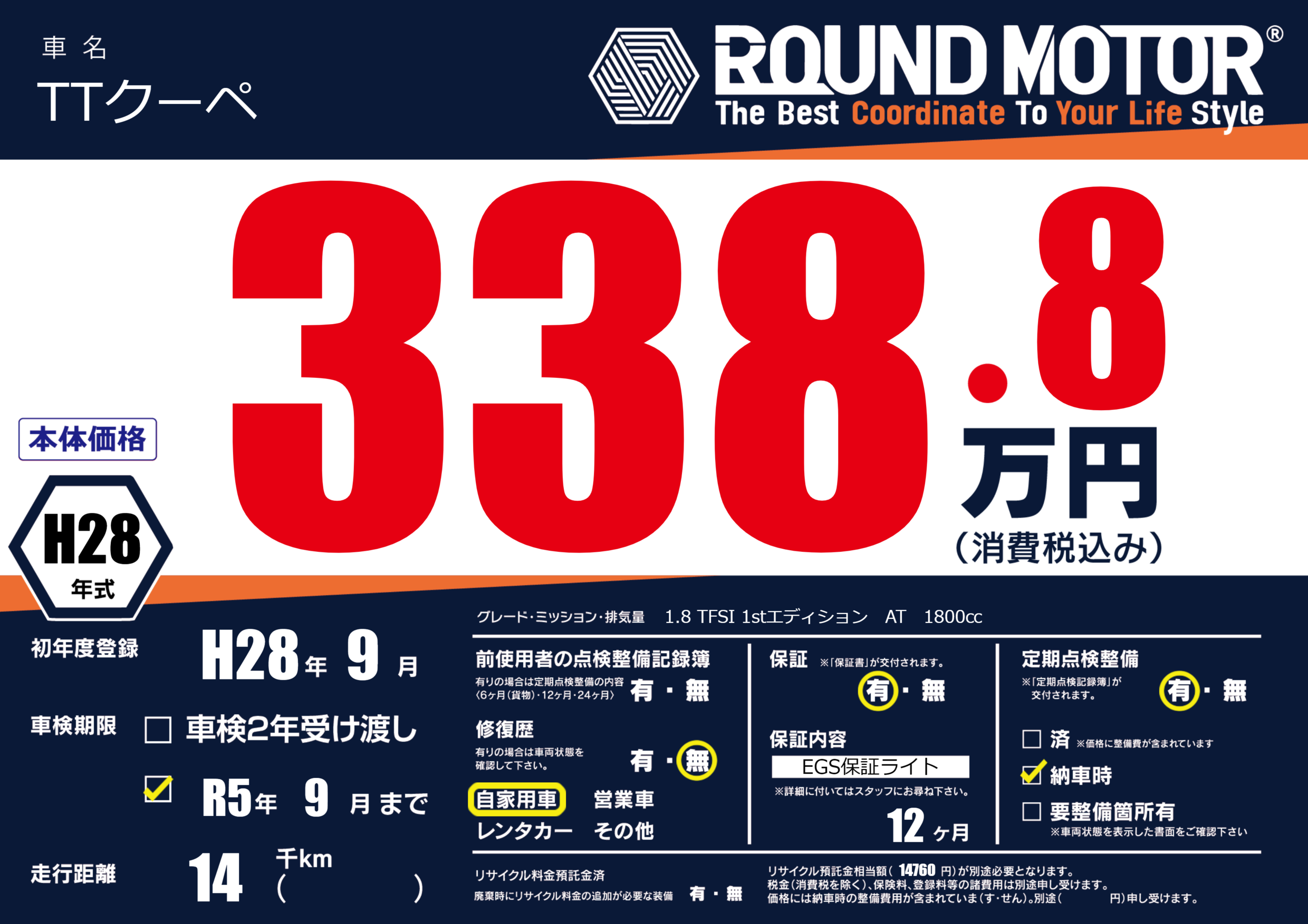 | 車名 | TTクーペ | グレード ミッション 排気量 |